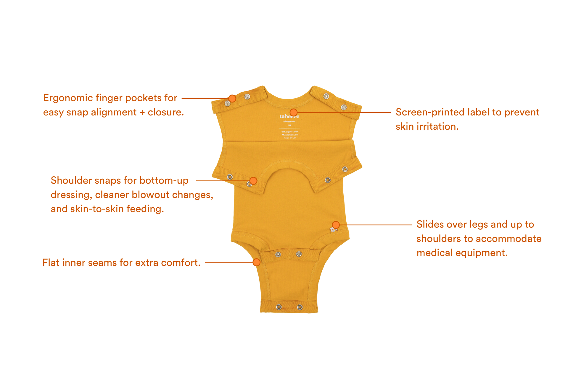 The feet-first, shoulder snapping onesie that started it all. Our Bottom-Up Bodysuits make getting your bub dressed and undressed *so much easier.* Our patented shoulder snaps — with quick-snap finger pockets — speed up dressing and changing, create minimal disruption for skin-to-skin undressing, and offer easy access for medical equipment.