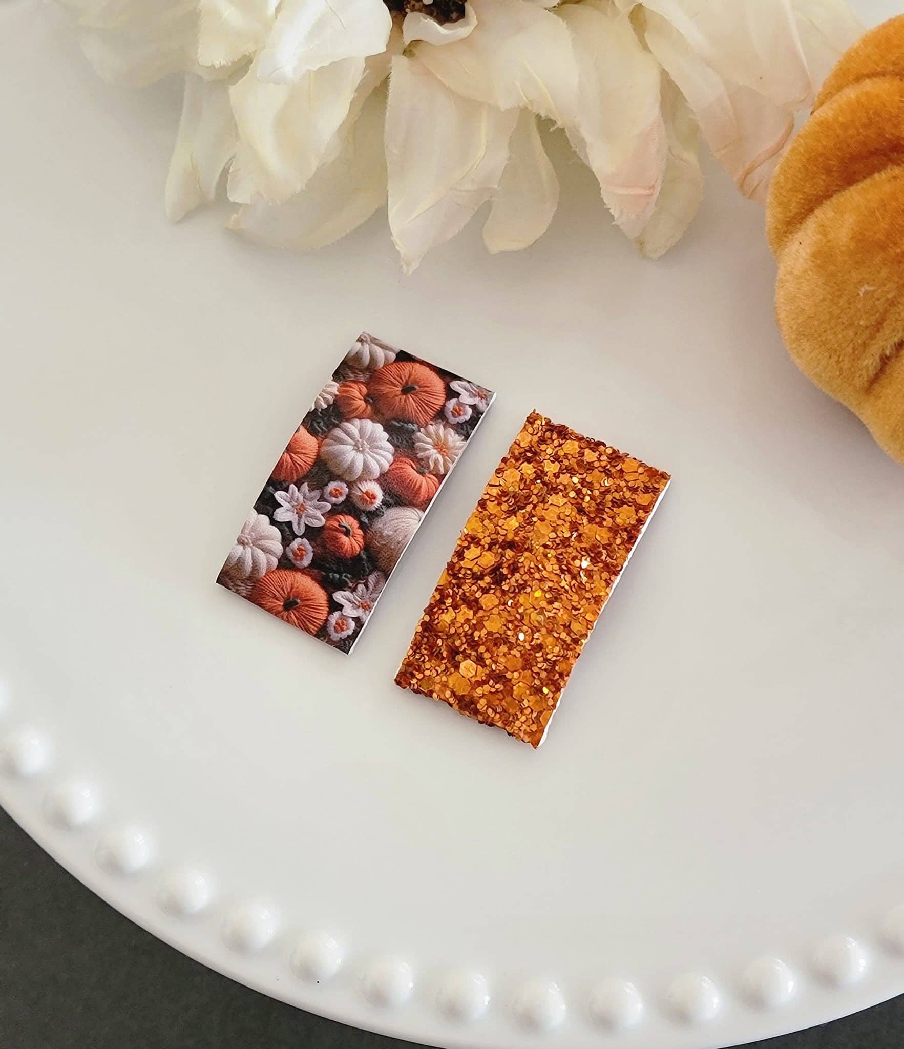 Pumpkins and Florals Embroidery 2" Rectangle Snap Clip Pair