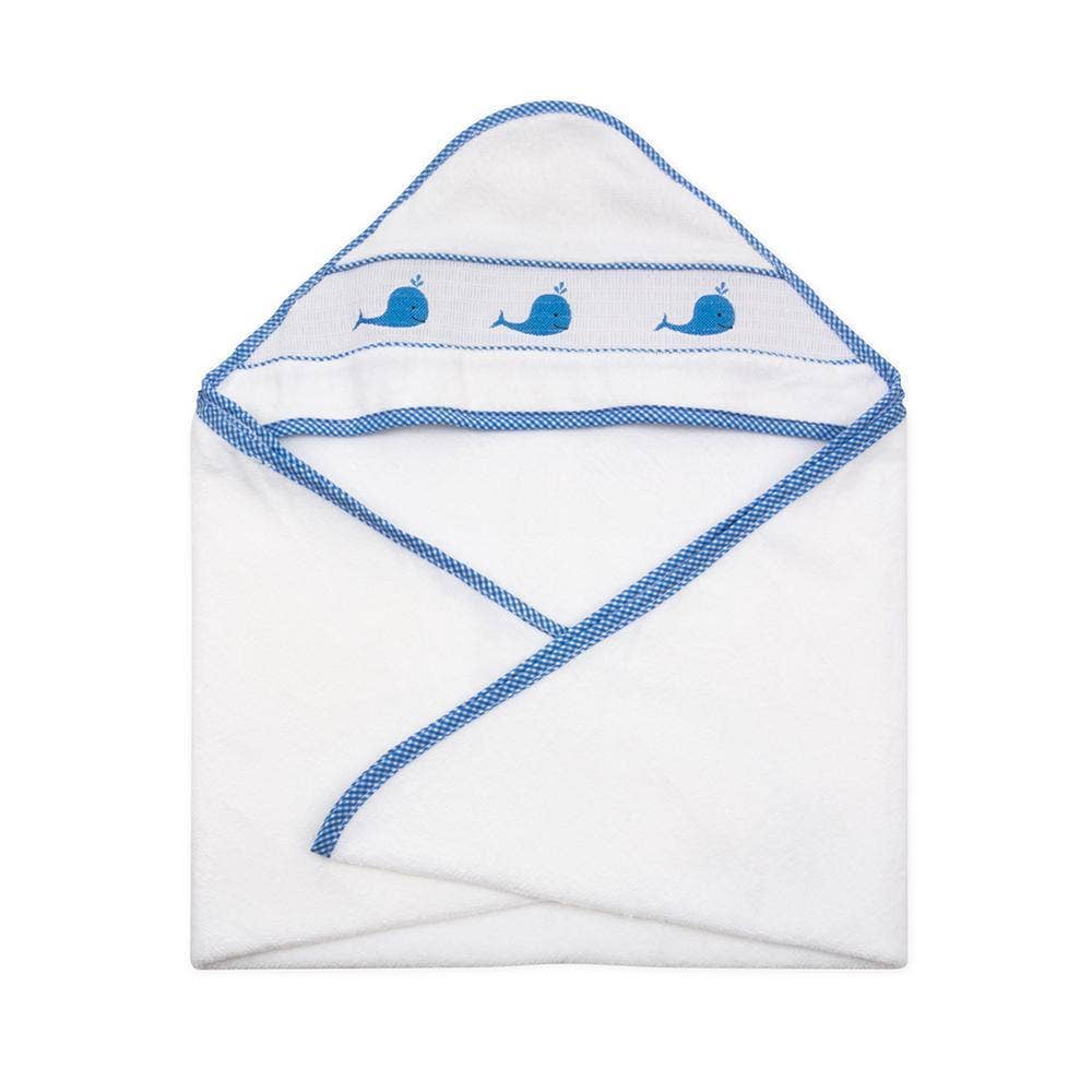 Blue Whale Smocked Hooded Towel