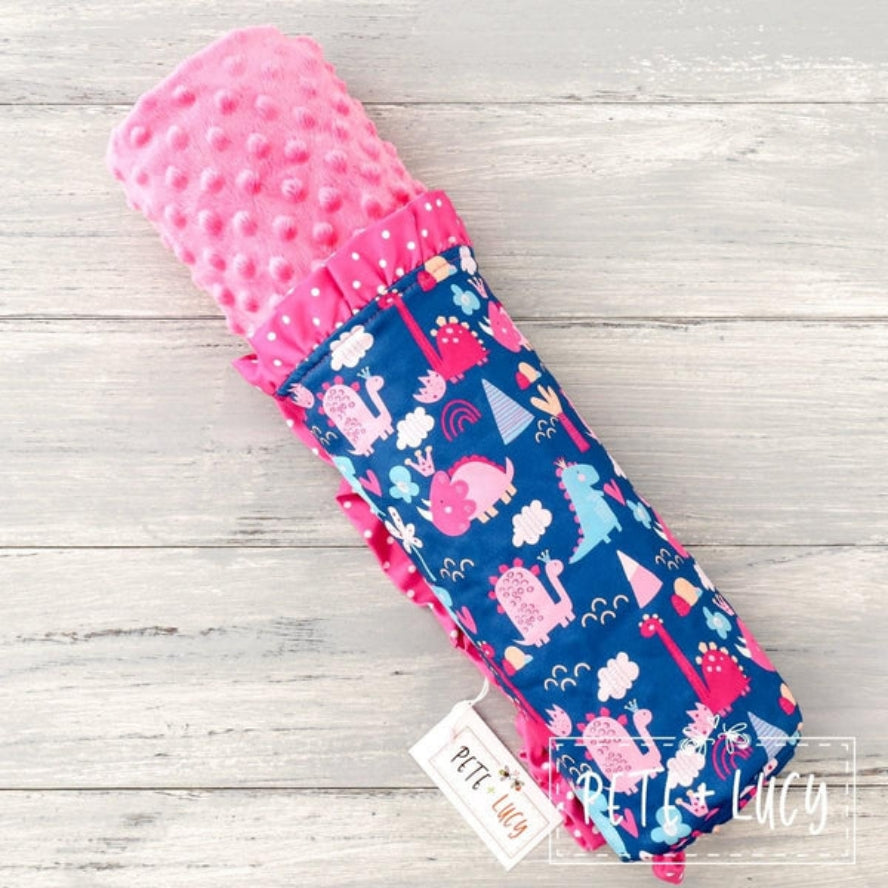 Snuggle up with the Fun With Dinos Minky Blanket from Pete + Lucy! Made with soft and cozy material, this blanket is perfect for keeping you warm and comfortable. The adorable dinosaur design adds a touch of fun to any room. Versatile and practical, this blanket is a must-have for dino lovers of all ages. Get yours today and bring some prehistoric charm to your home!