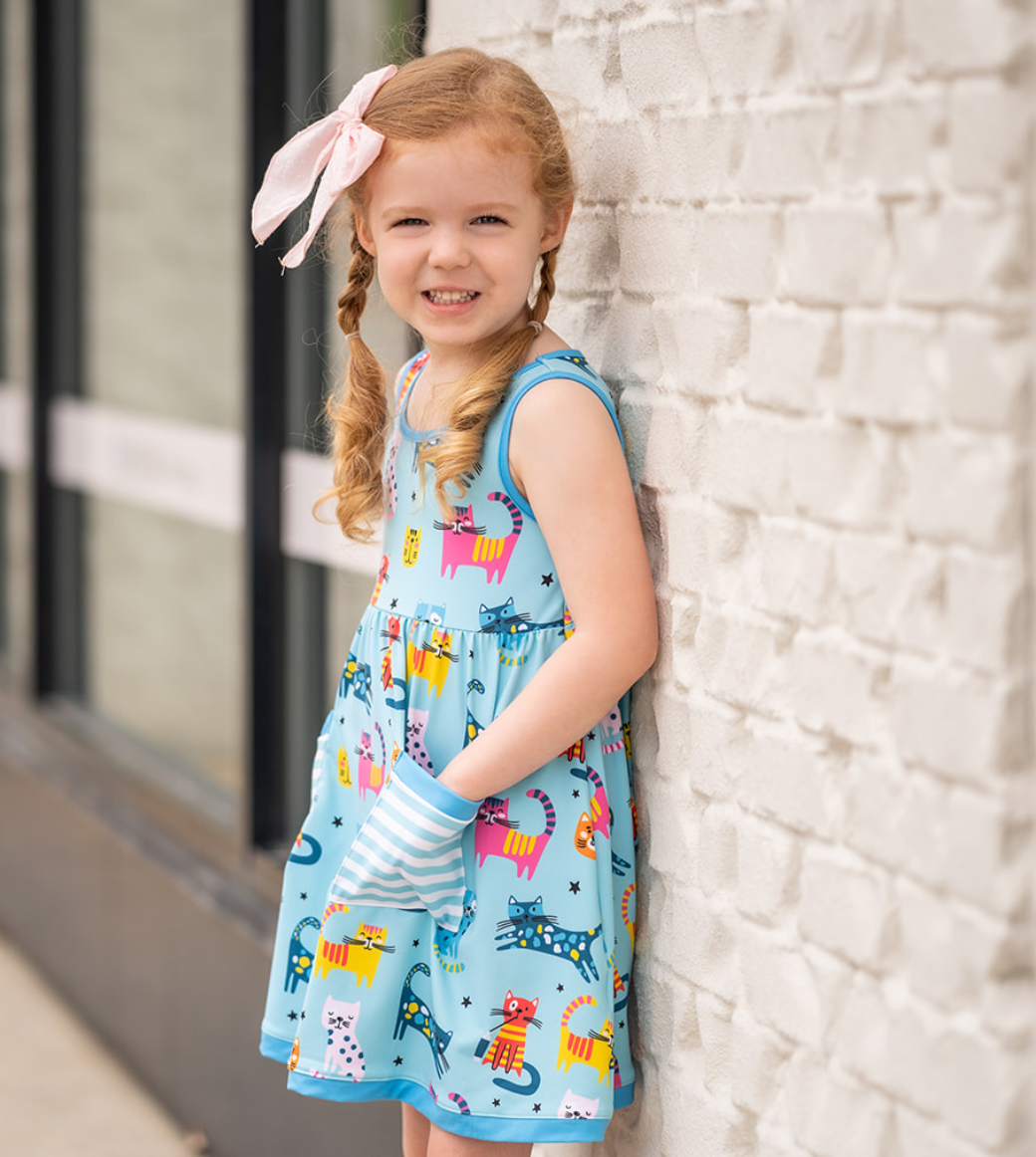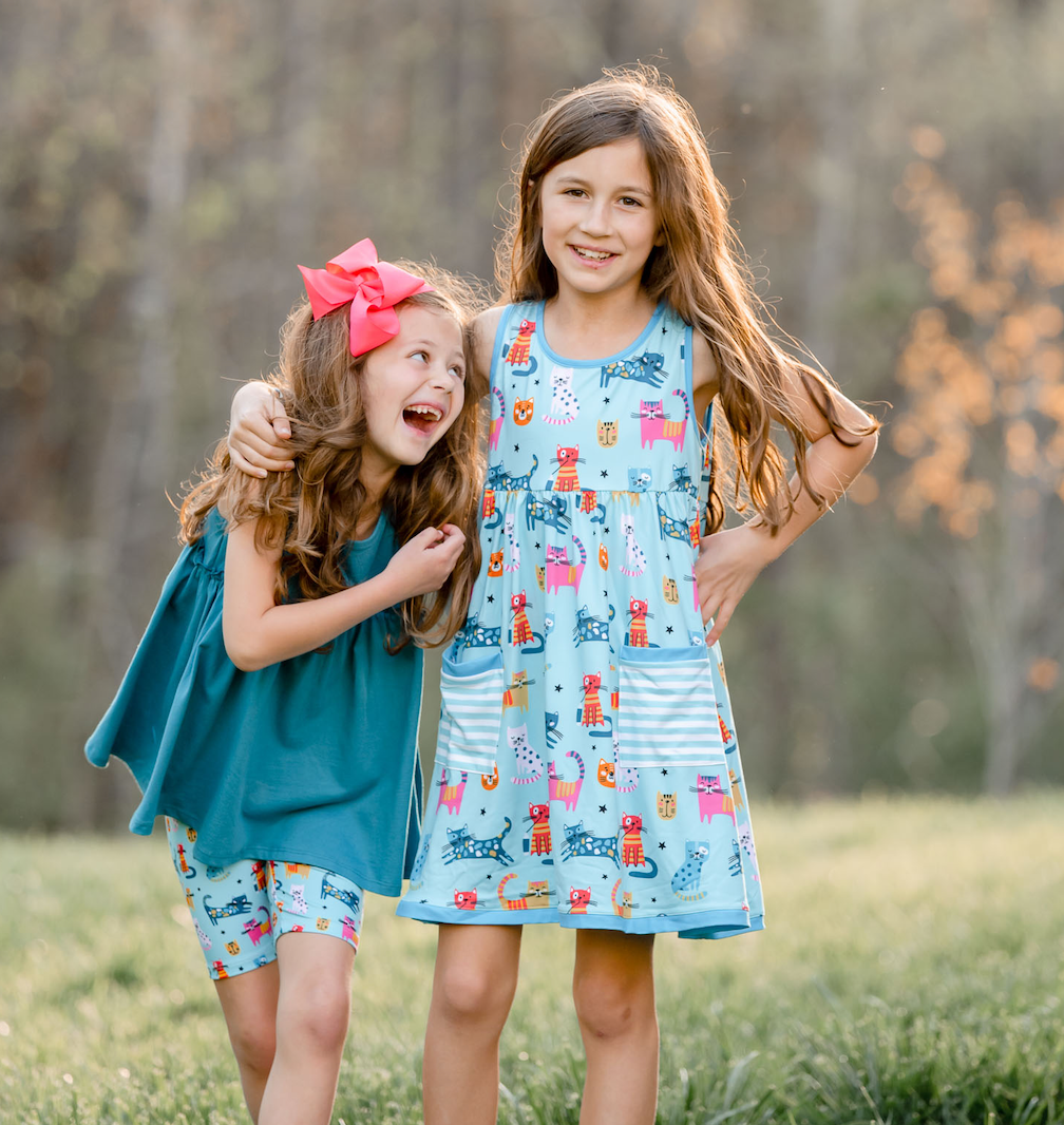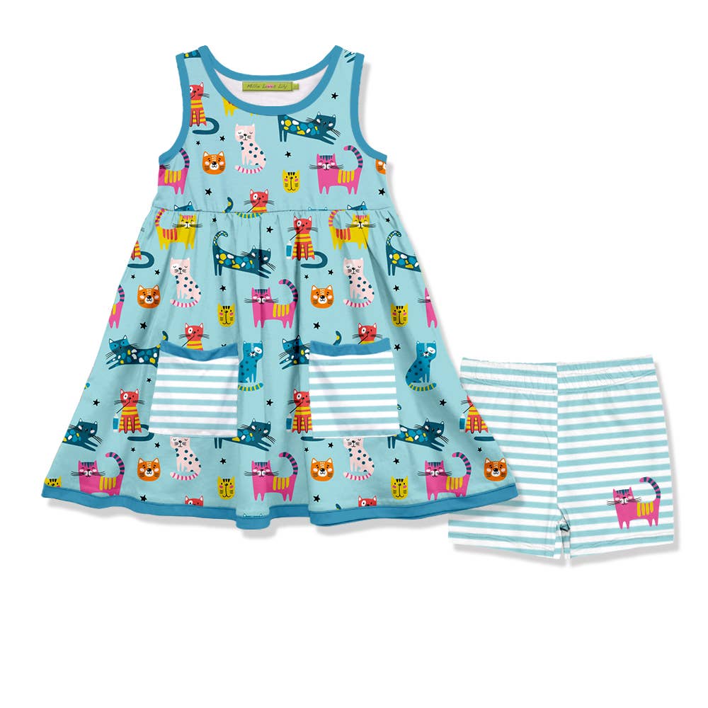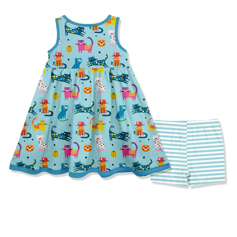 Mint Kitty Cats Sleeveless Dress & Shorts