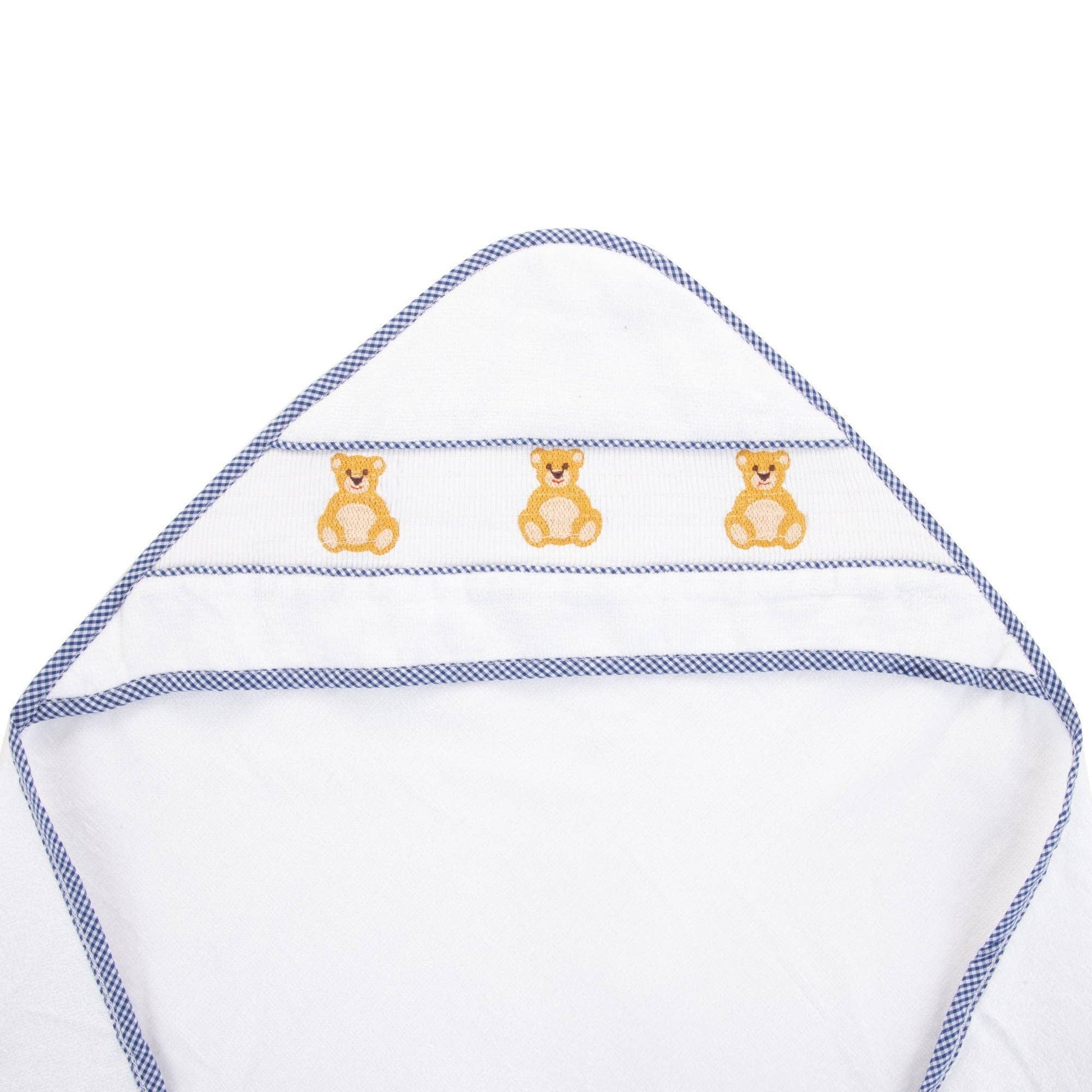 Make bath time fun with our adorable smocked hooded towels! Trimmed in gingham print, these hooded towels feature a smocked hood featuring an adorable icon. They come neatly rolled and tied in a bow, perfect for gifting! Monogram the hood for a personal touch!