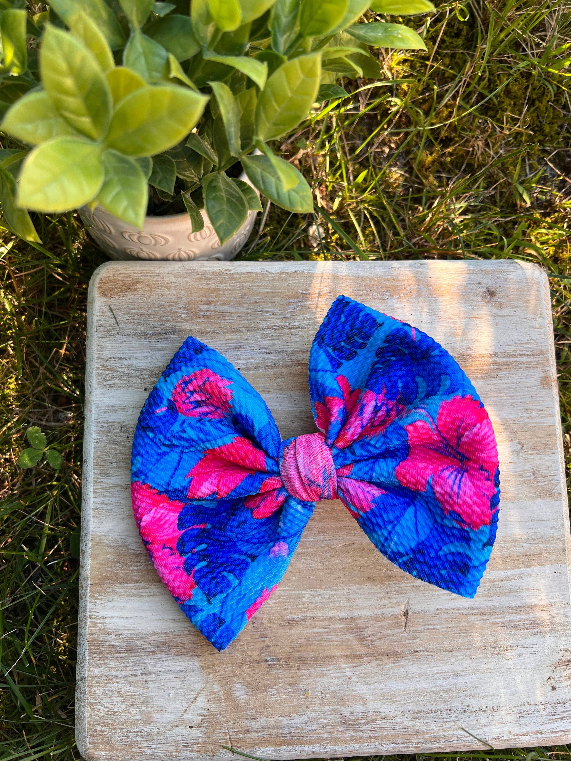 Neon Hawaiian Floral Bow