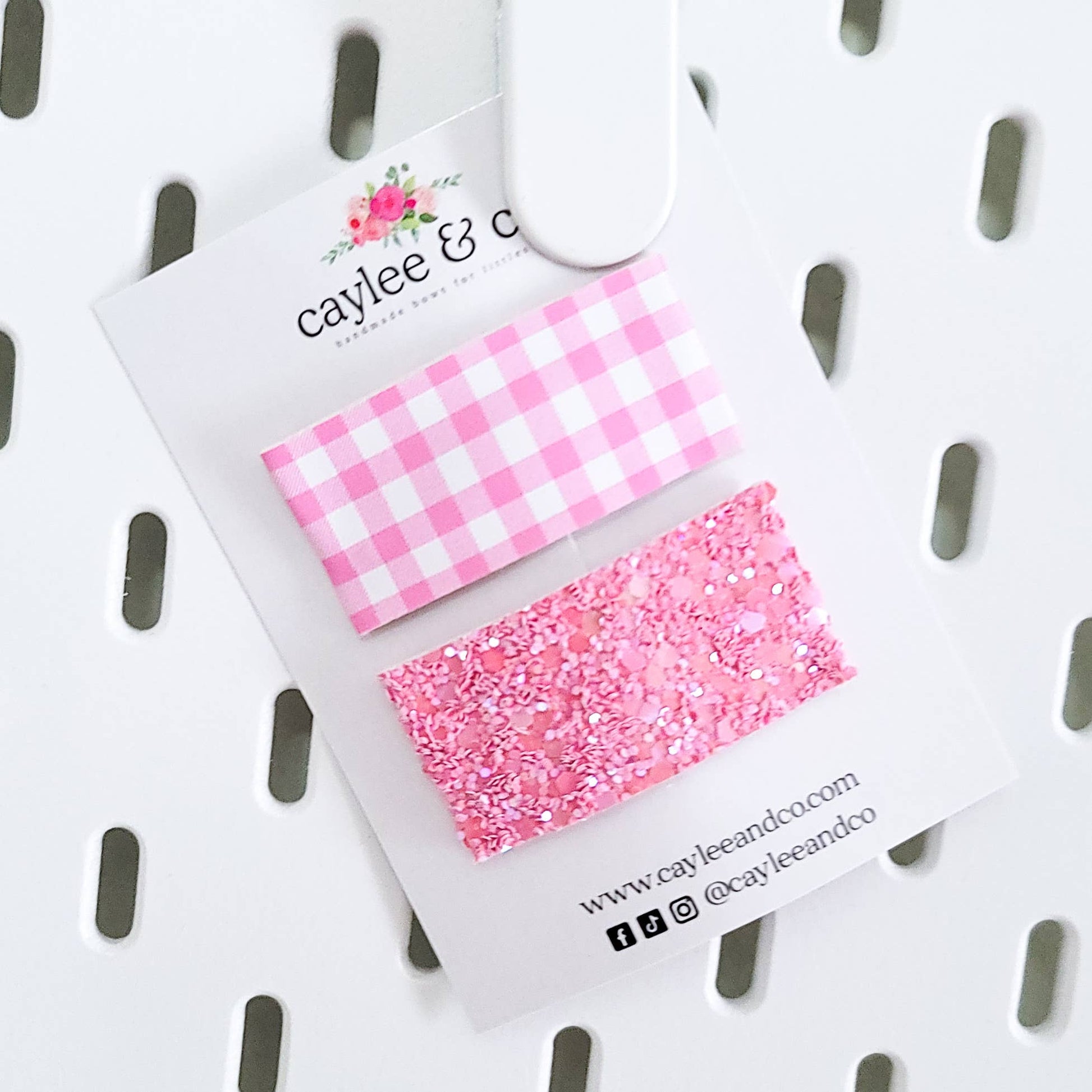 These clips are hand cut and made with vegan leather or glitter. They are approximately 2 inches. They come as a set as pictured. Items come from a smoke and pet free home. Due to the nature of the product pattern placement may vary. Perfect package fillers.