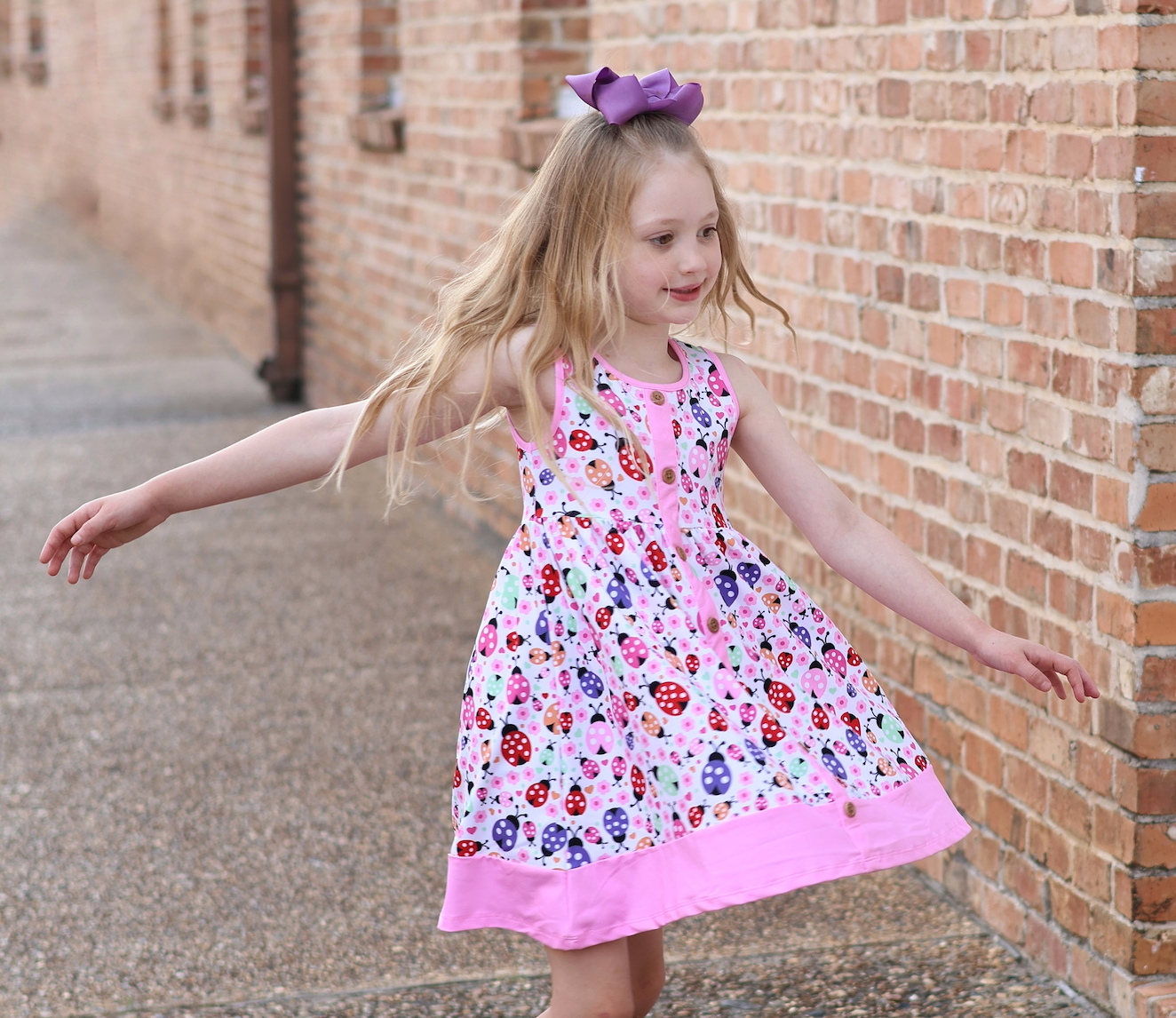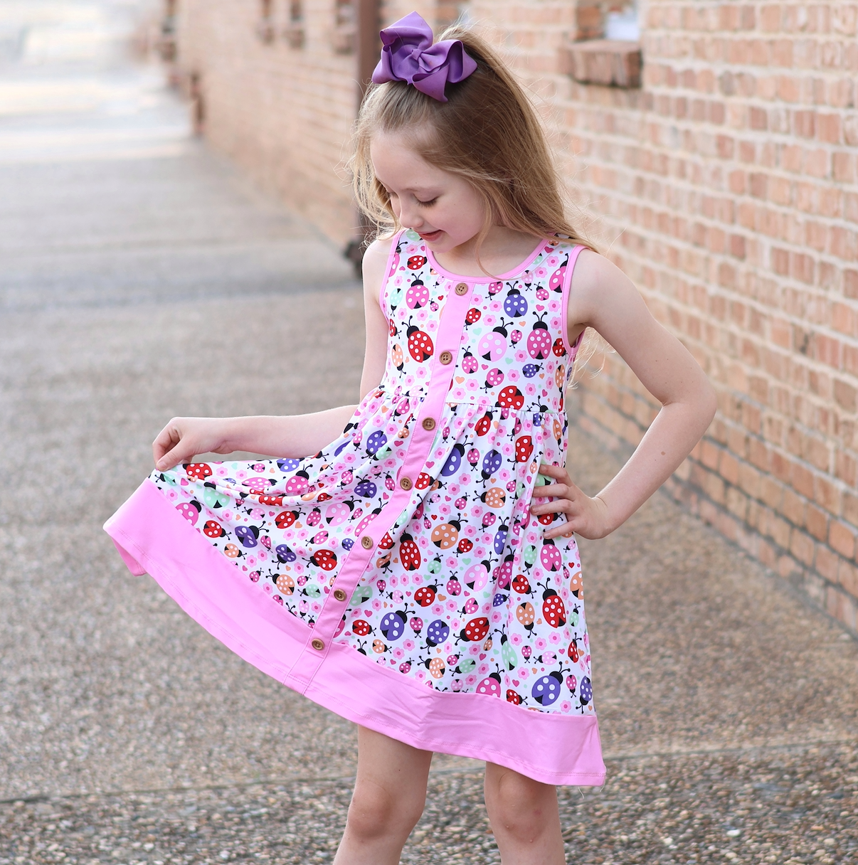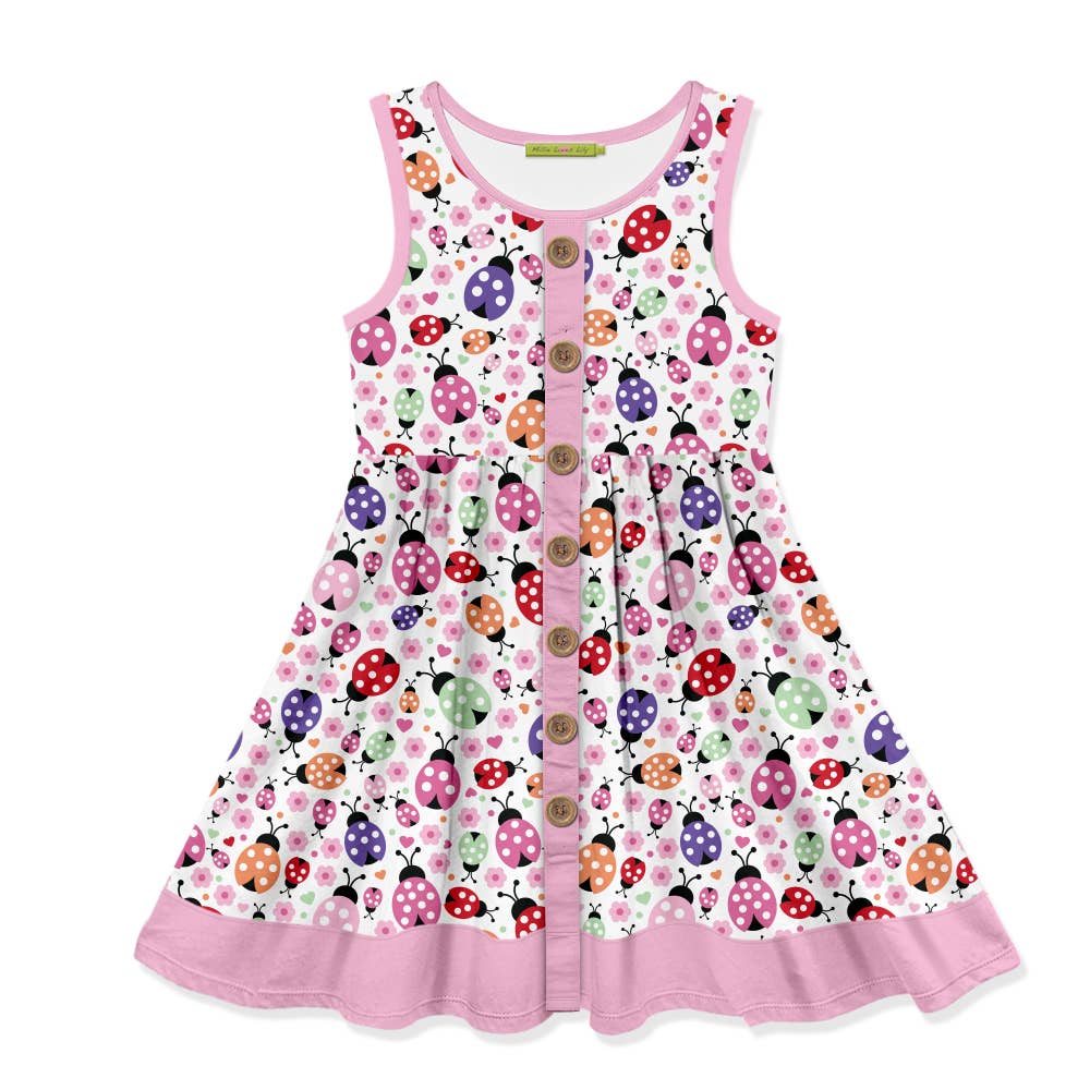 Pink Ladybug Spots Sleeveless Button-Front Dress