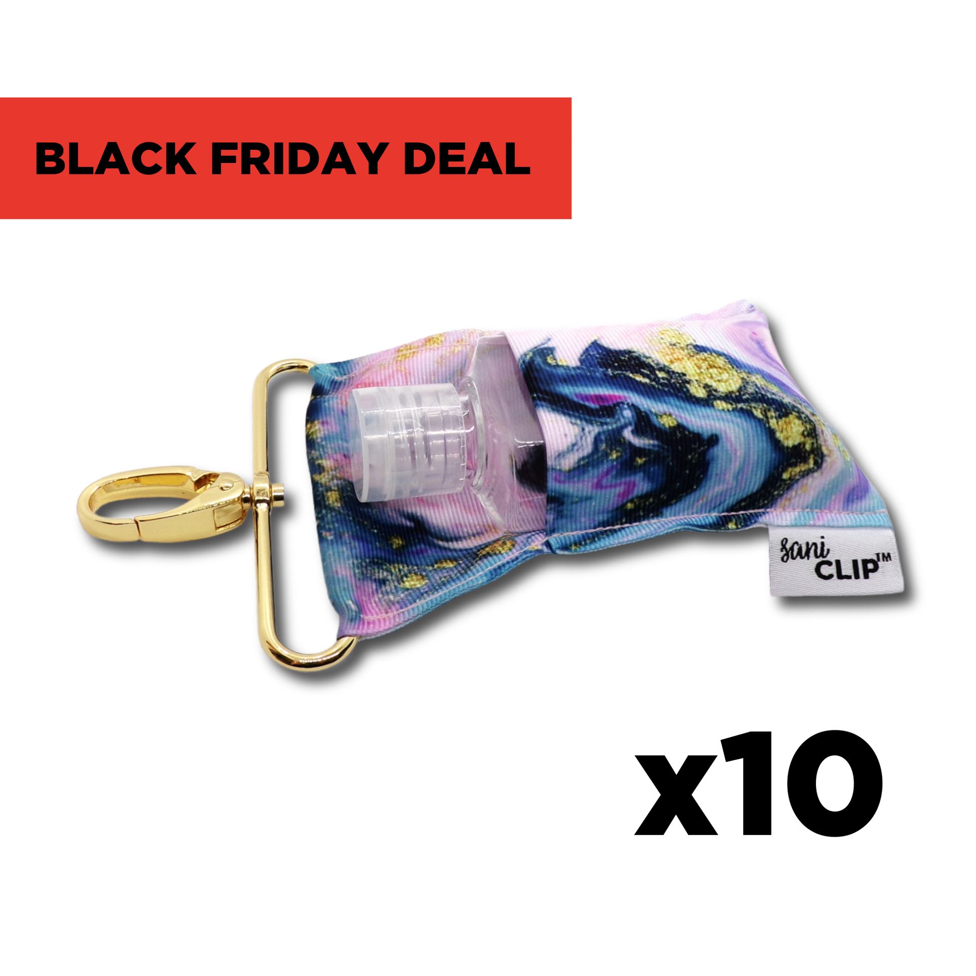 The SaniClip was designed to save you time! Stop digging through your purse for your hand sanitizer! The SaniClip™ holds 2 oz bottles of hand sanitizer and easily clips to your purse hardware or backpack, or anywhere you choose. Hand sanitizer not included. STANDARD SIZE: measures 3" wide x 6.5" tall and holds 2 oz bottles of hand sanitizer such as drug-store and big box brands like GermX, Purell, Target/CVS/Walgreens brands, etc. Pattern may shift slightly due to the handmade nature of this item.