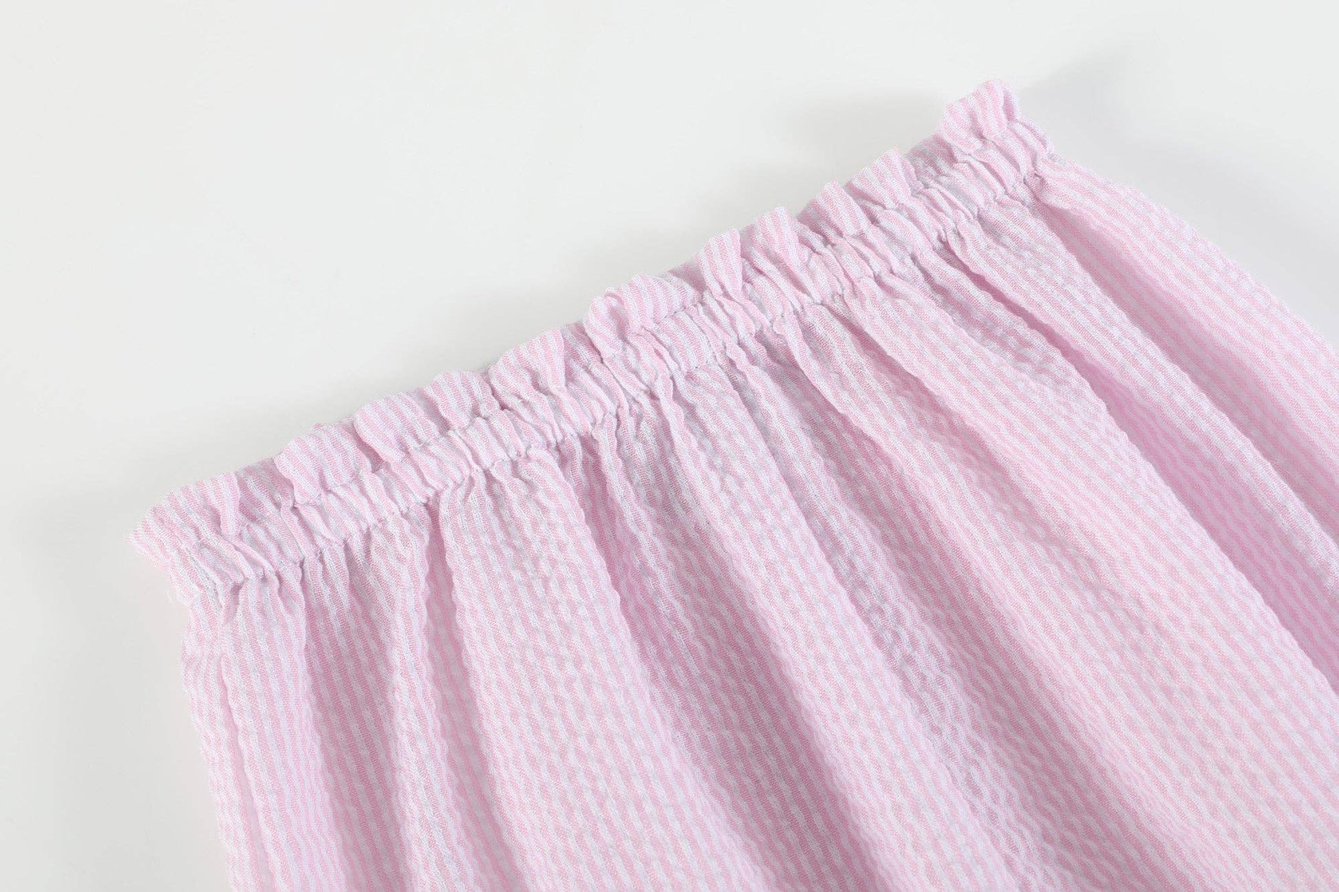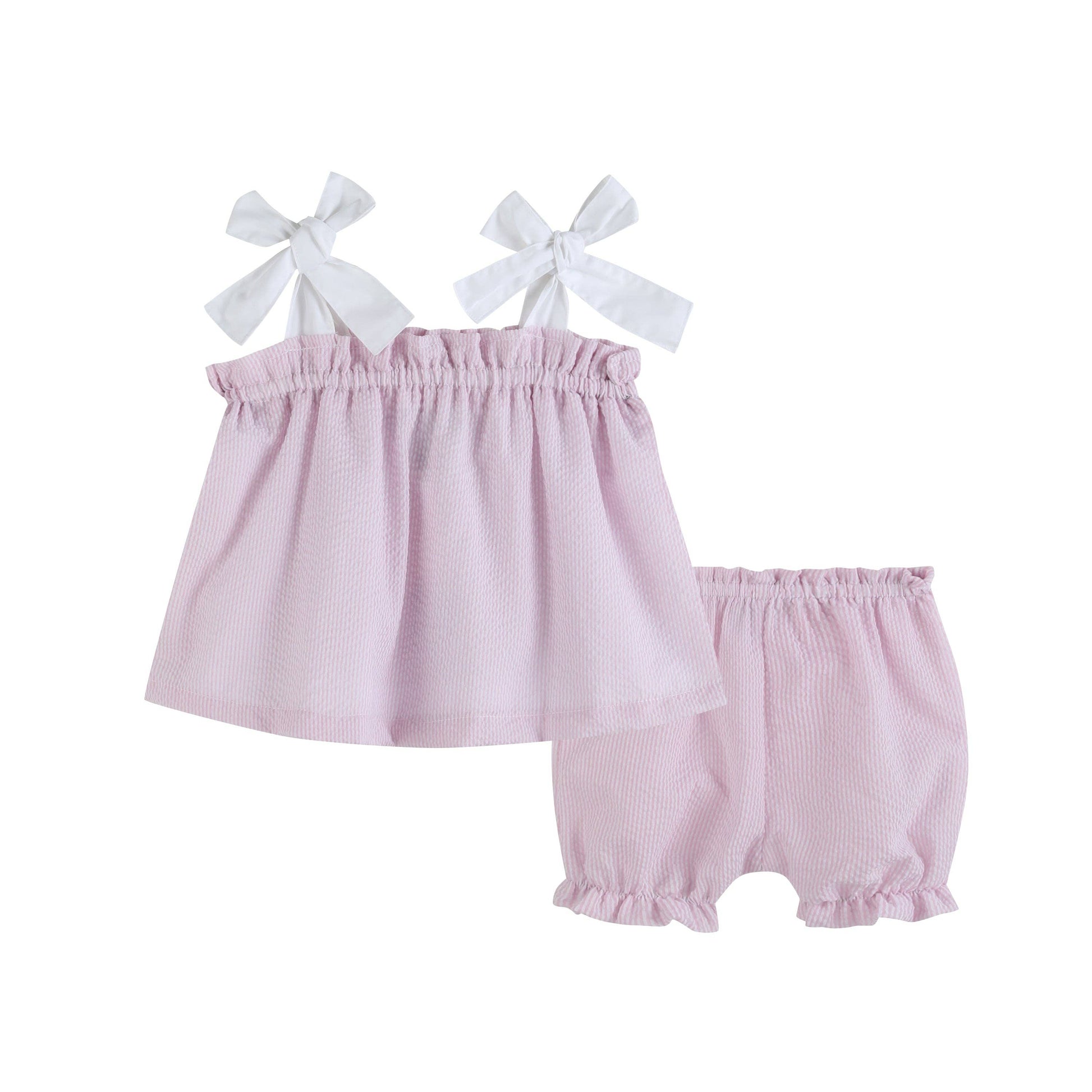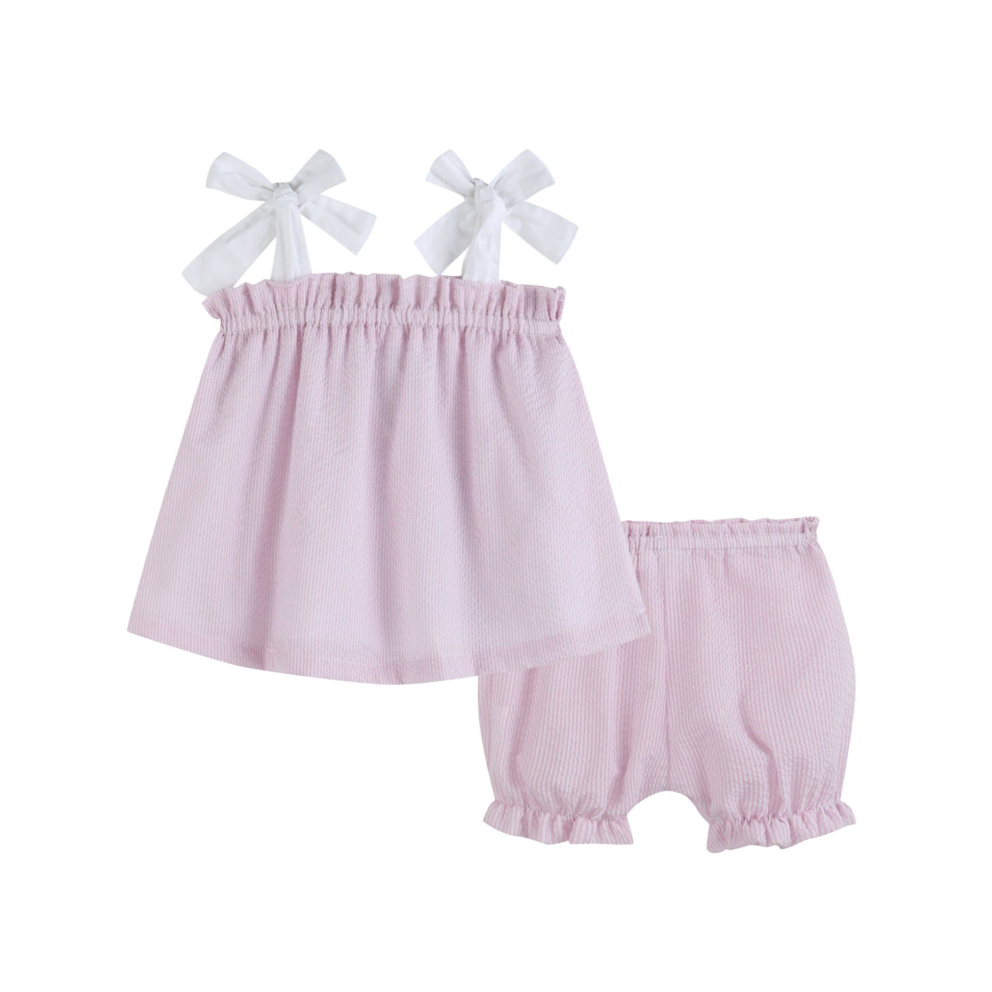 Your little princess will be ready for special occasions or everyday fun in this stylish pink seersucker 2pc set! The dainty bow straps add a hint of sweetness while the classic seersucker fabric ensures your mini-me looks chic. Outfit your cutie in the perfect blend of fashion and comfort!