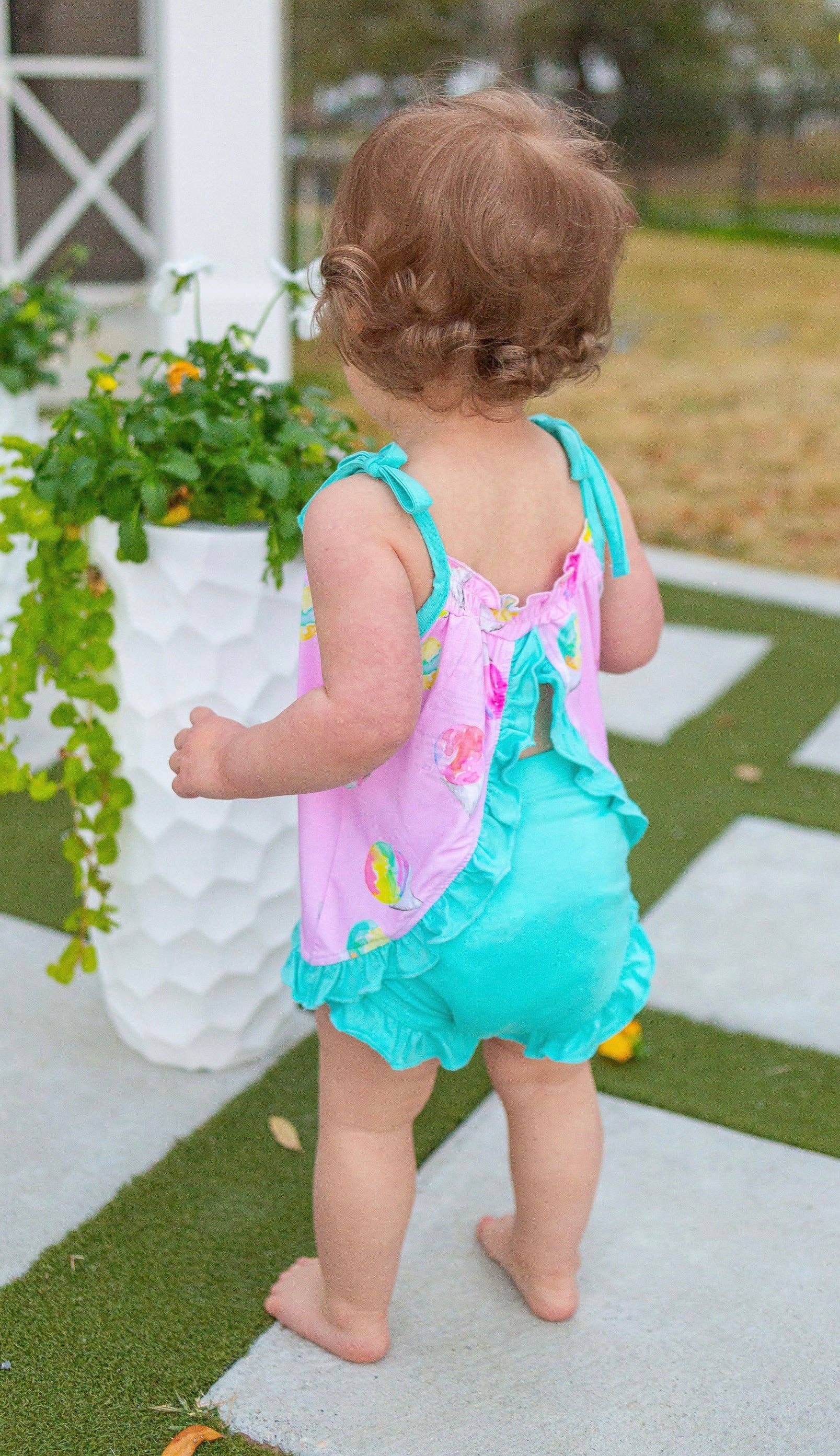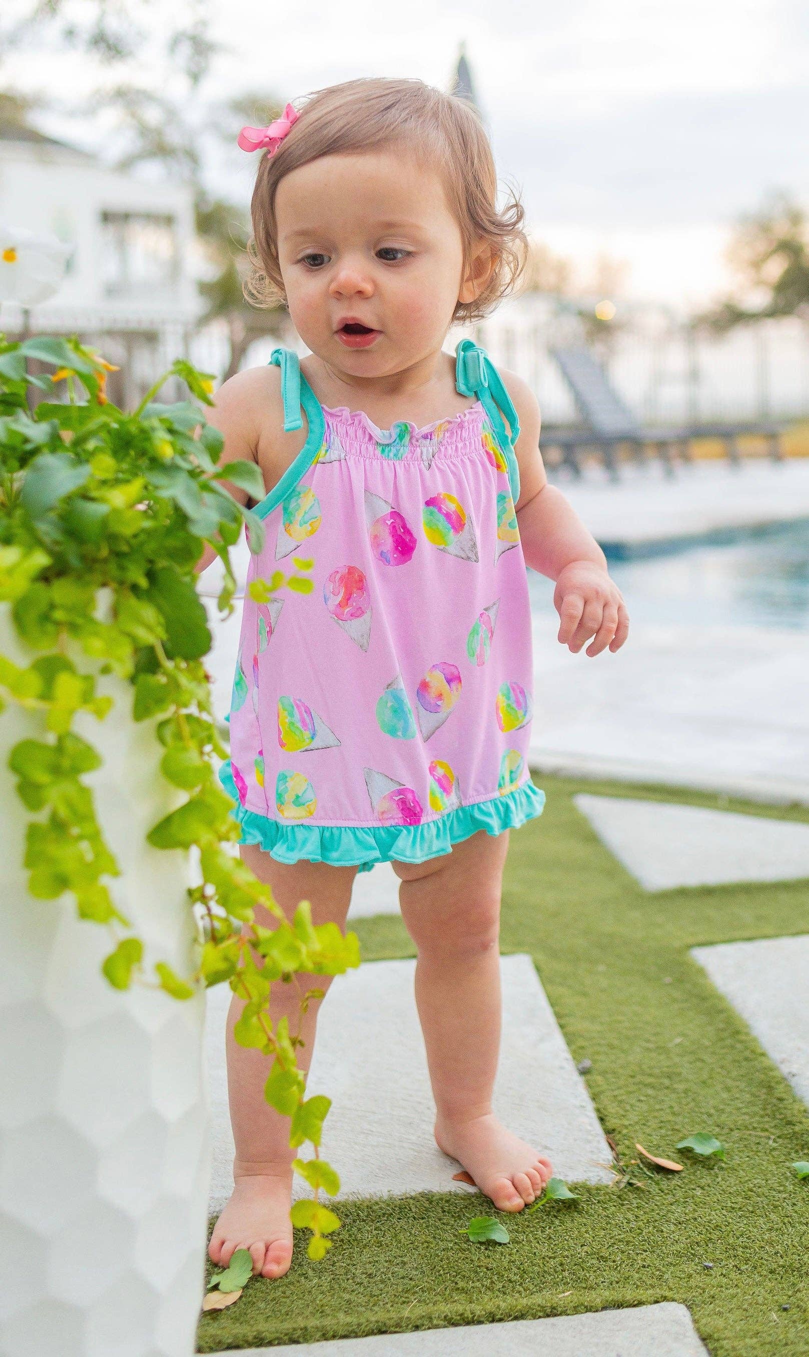 * Pink Snowcones watercolor design with Aqua Ruffle Trim