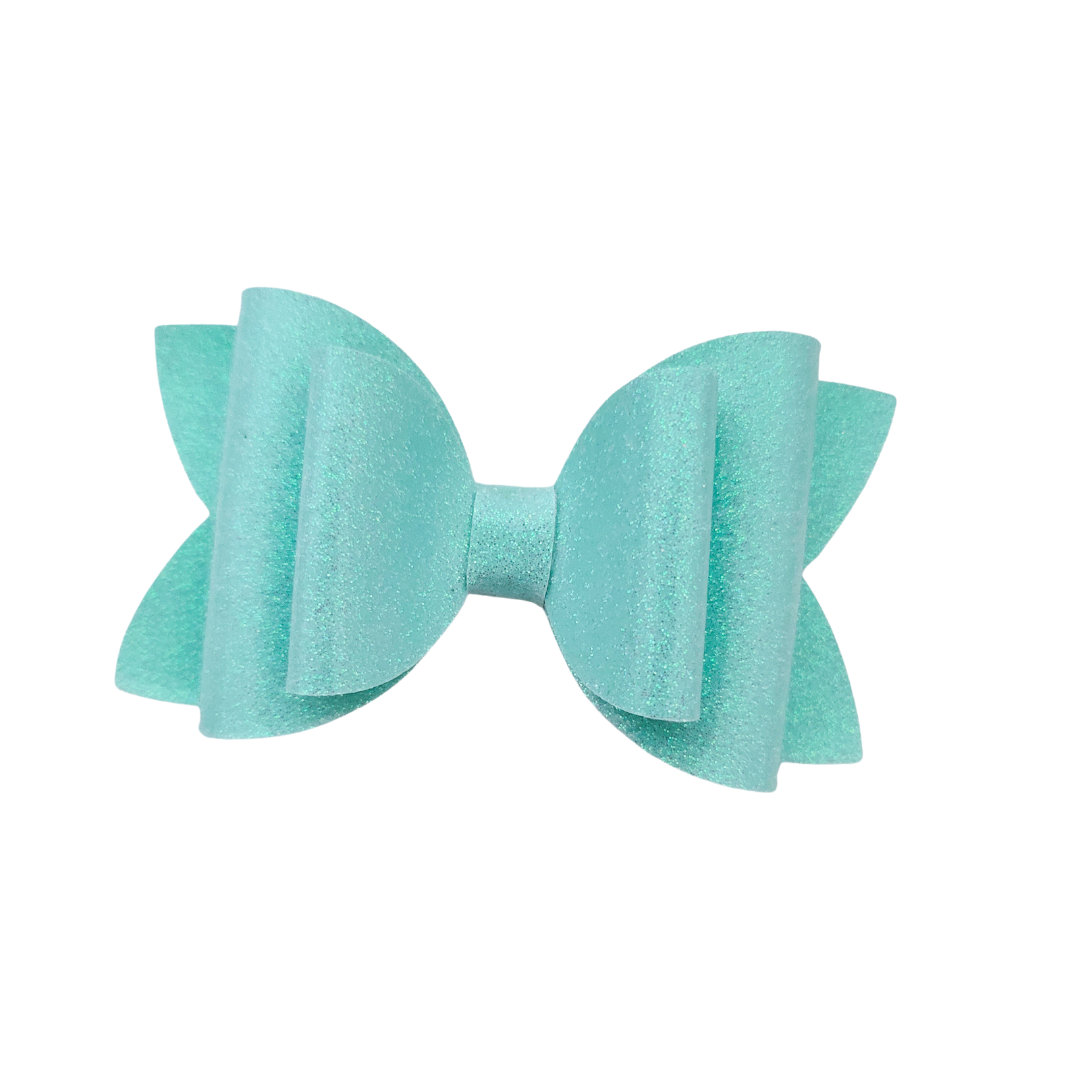 These stacked bows are hand cut and made with vegan leather and/or glitter canvas. They are approximately 3.5 inches ans come on an alligator clip with teeth. Items come from a smoke and pet free home. Due to the nature of the product pattern placement may vary.