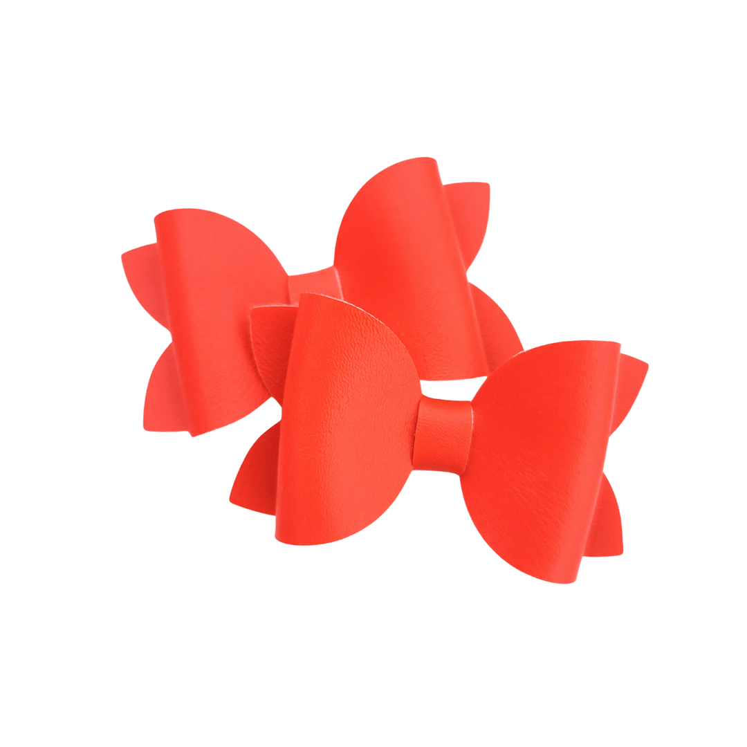 These piggie bows are hand cut and made with vegan leather or glitter. They are approximately 2.5 inches and come on alligator clips. Items come from a smoke and pet free home. Due to the nature of the product pattern placement may vary. Each set comes on an individual branded card.