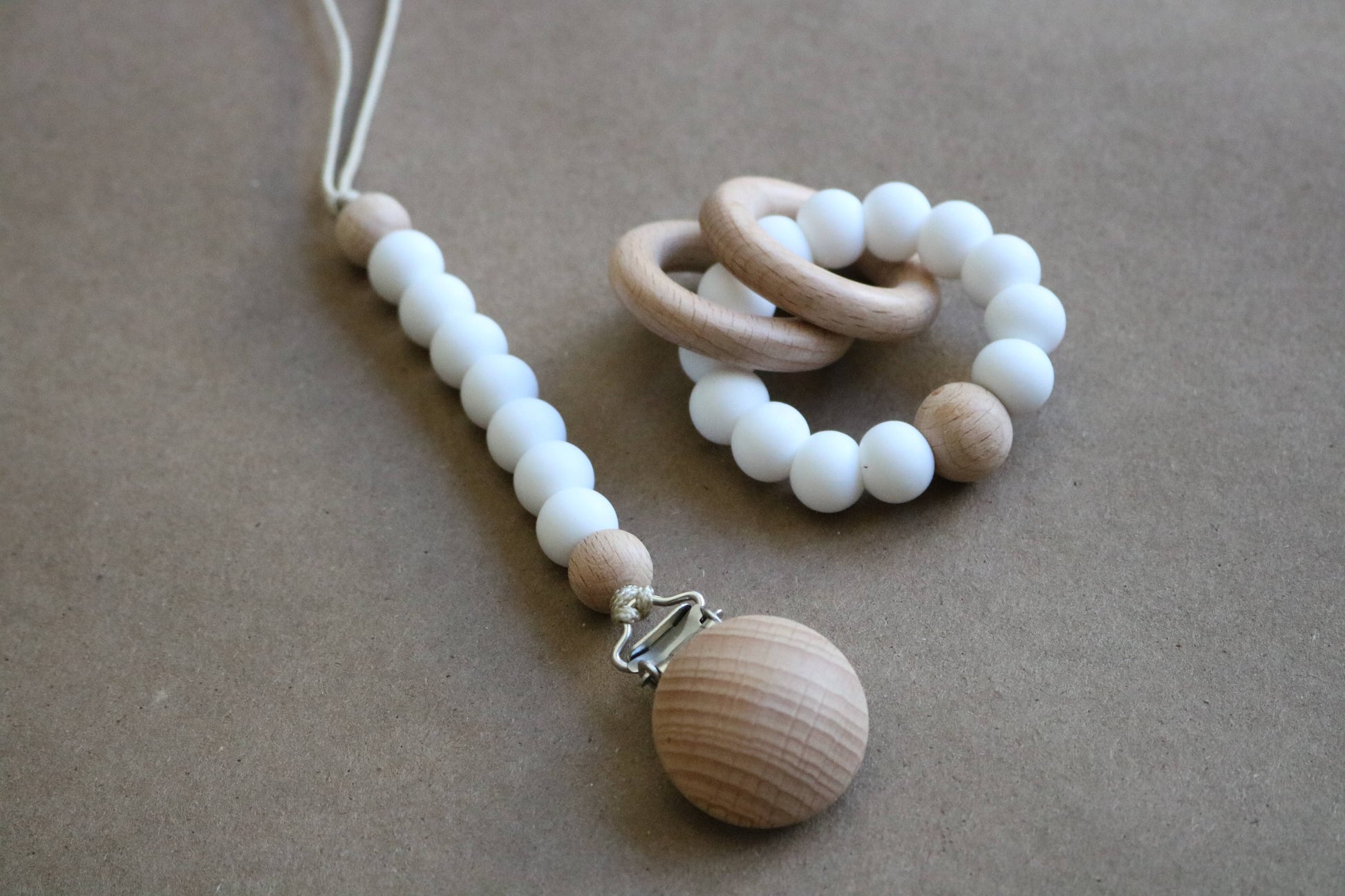 Each teether is small enough to fit as a bracelet around baby’s wrist and has a soft silicone texture that offers the perfect on-the-go teething relief. Our baby essentials products combine simplicity with style. Our products are built to last with food grade silicone and real polished beech wood. Our products are BPA Free, Lead Free, Phthalate Free and safe for teething.