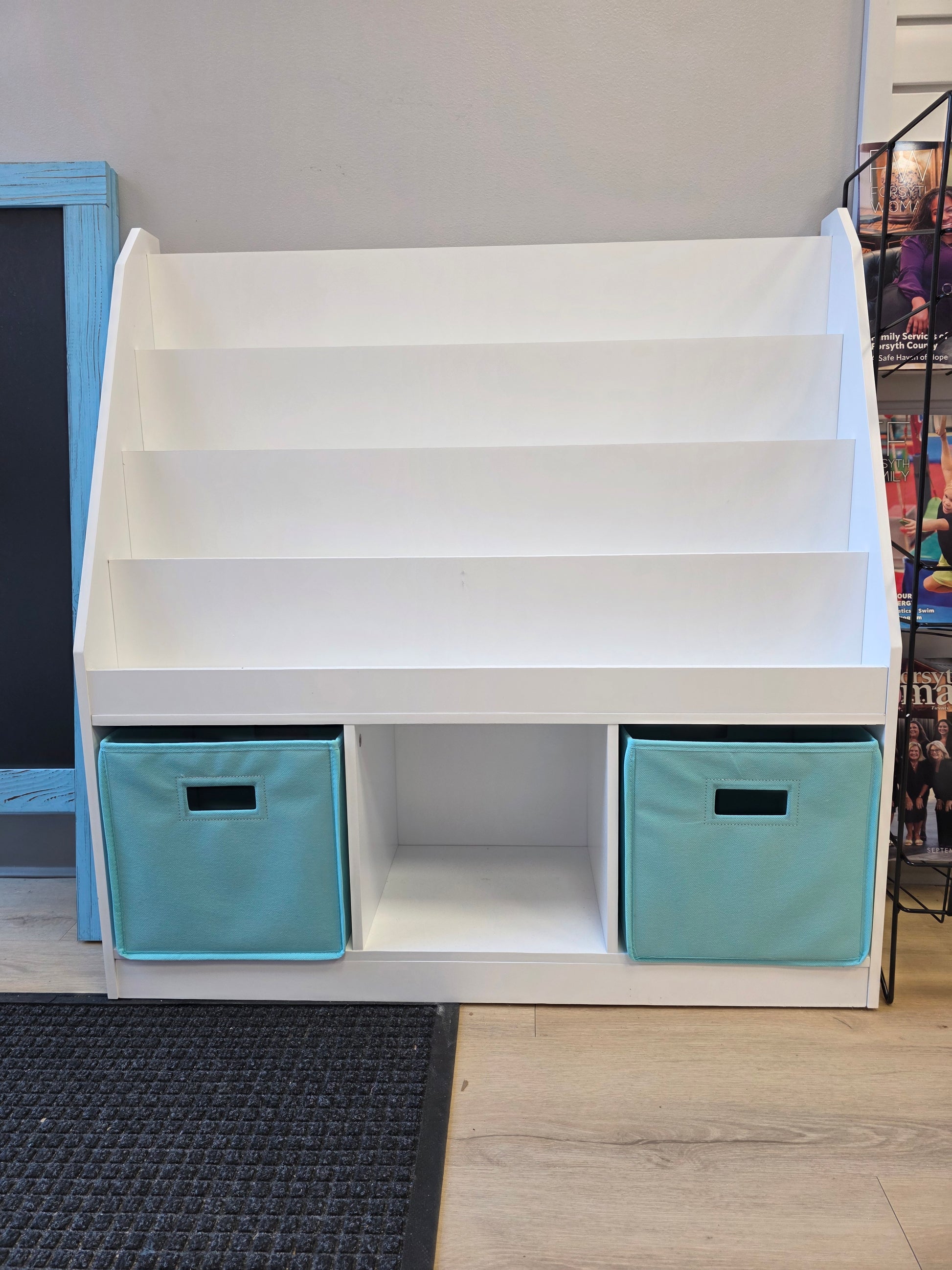 River Ridge Kids Bookrack with 3 Cubbies and 2 Aqua Bins