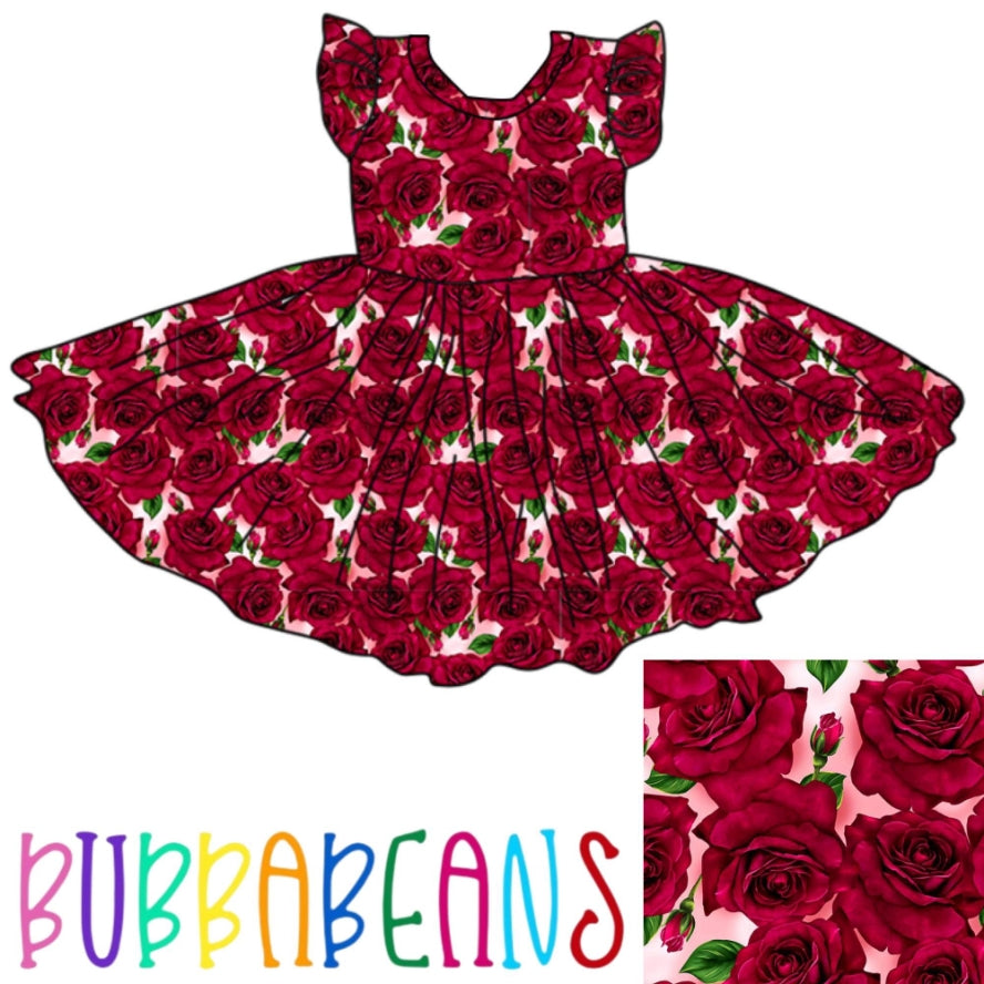 Rose Parade Flutter Sleeve Dress - Bubbabeans