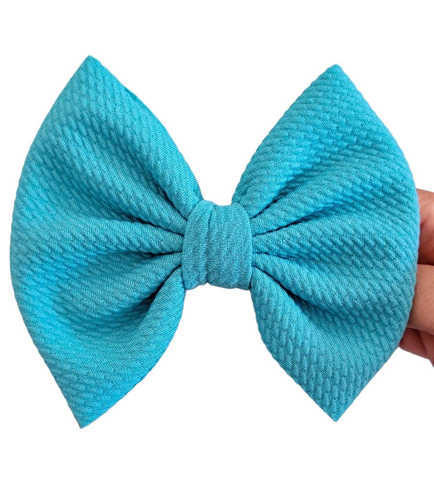 Attached to a 3 inch right-sided alligator clip with teeth (Nylon headband available upon request)