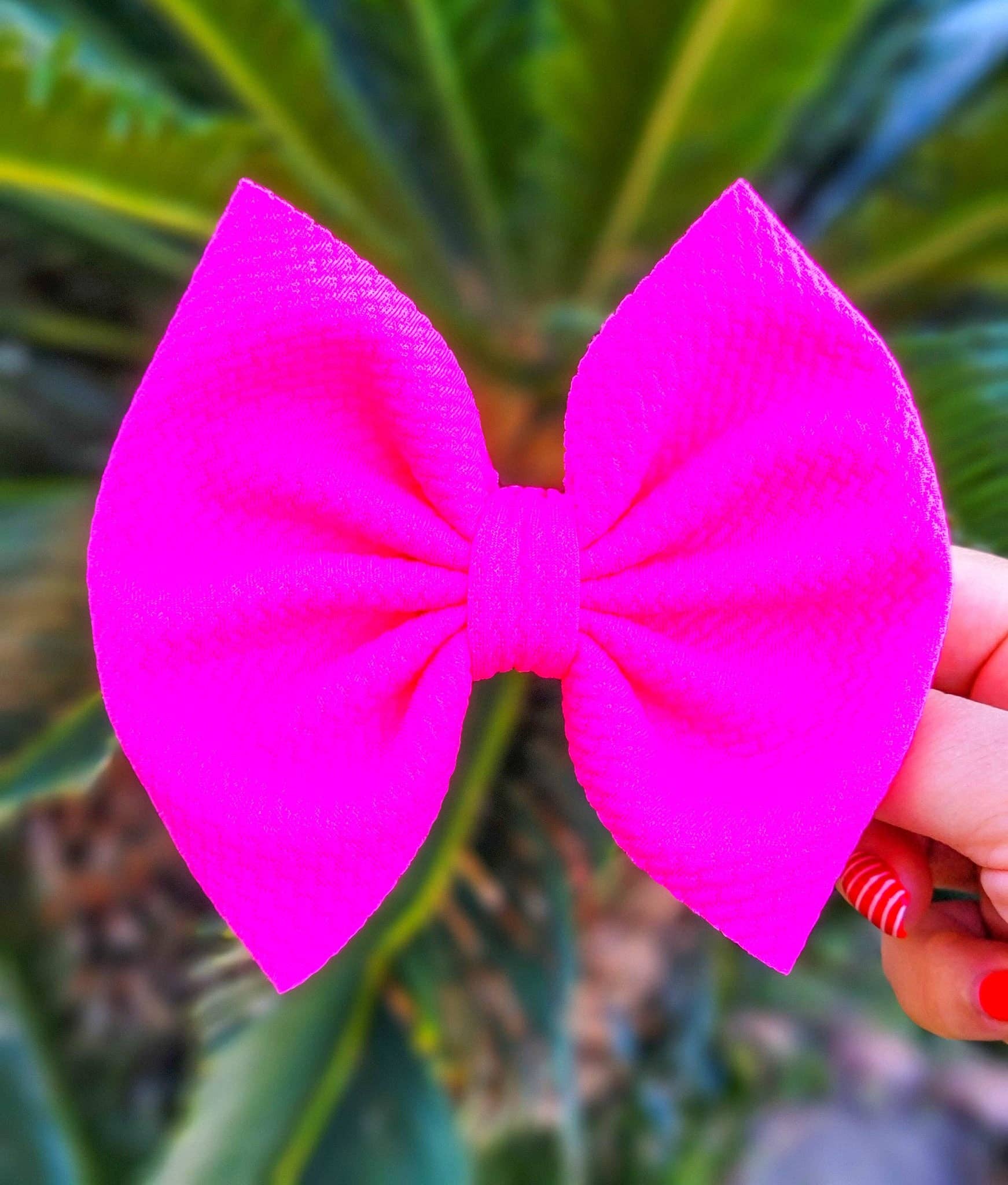This Savannah bow is: Approximately 5.5 inches from side to side Attached to a 3 inch right-sided alligator clip with teeth (Nylon headband available upon request) Ken's Girlfriend bullet/Liverpool fabric **Please note that some colors may appear slightly different based on your monitor settings**