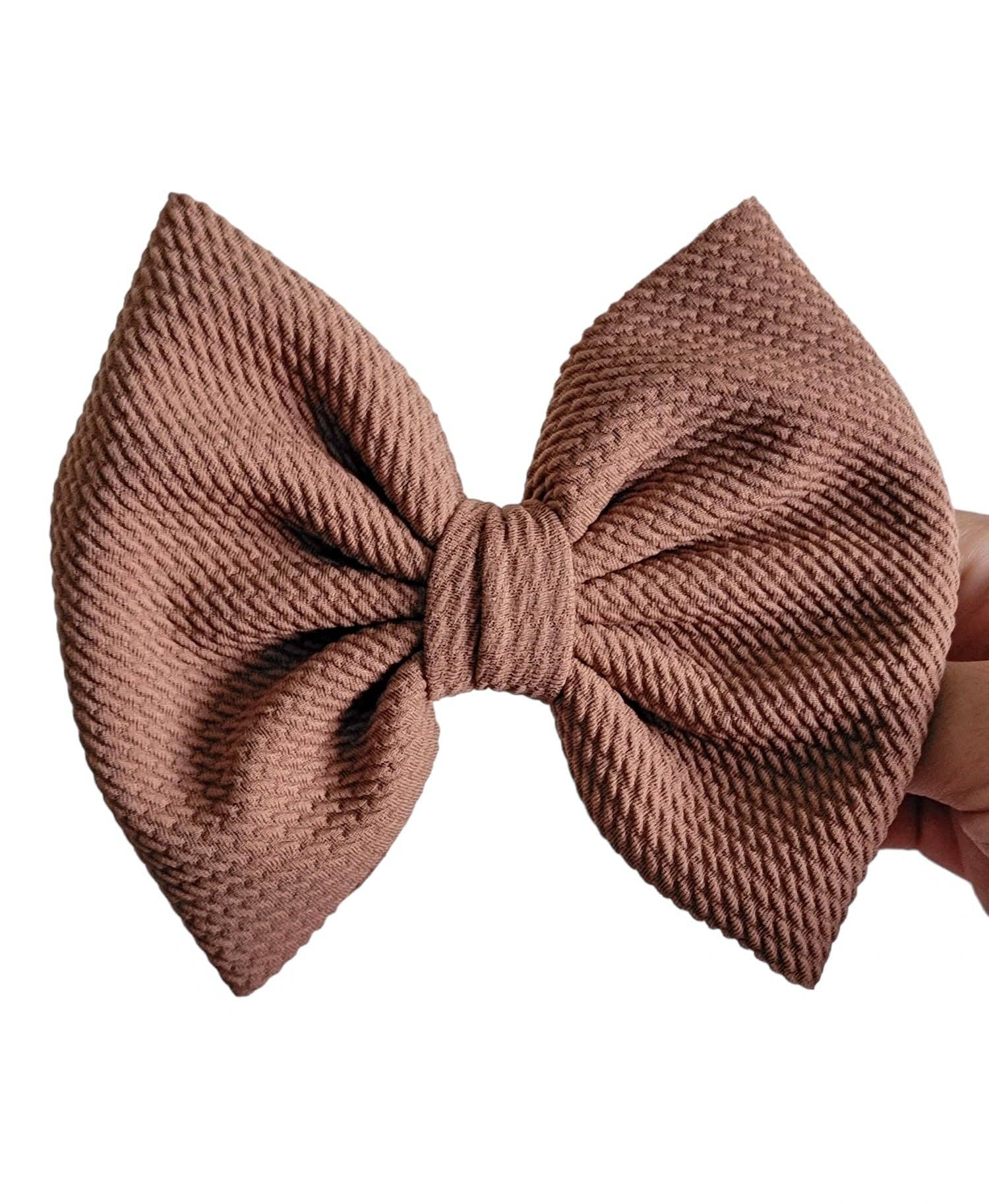 Attached to a 3 inch right-sided alligator clip with teeth (Nylon headband available upon request)