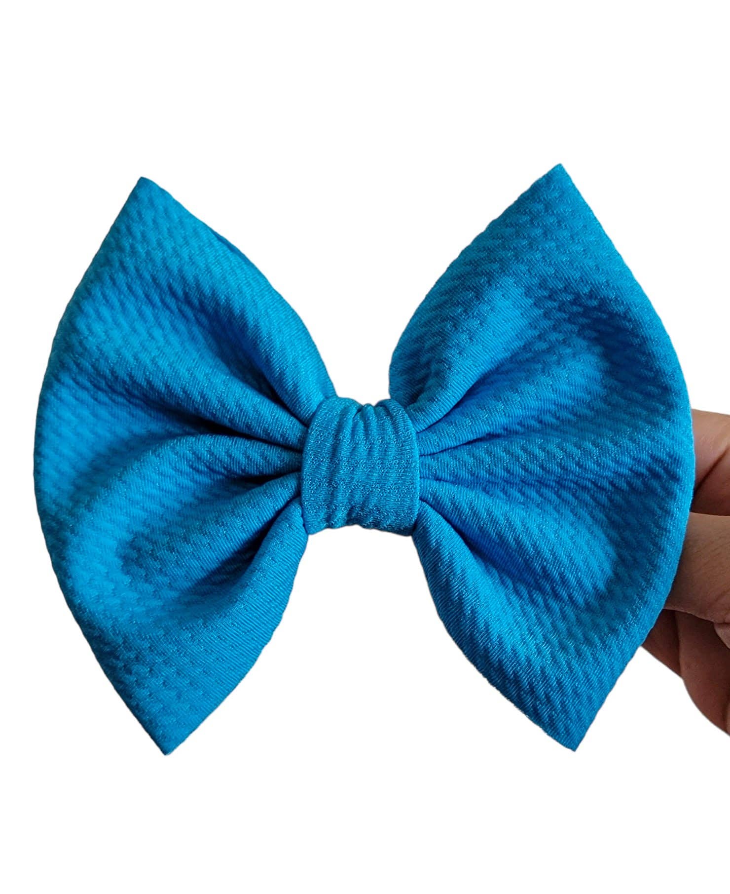 Attached to a 3 inch right-sided alligator clip with teeth (Nylon headband available upon request)
