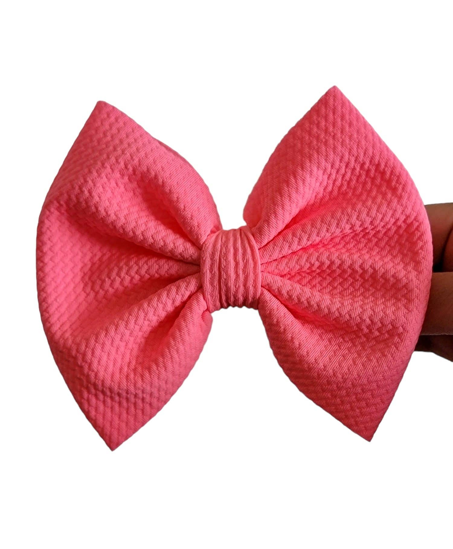 Attached to a 3 inch right-sided alligator clip with teeth (Nylon headband available upon request)