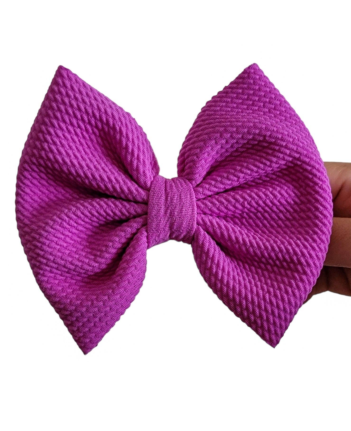 Attached to a 3 inch right-sided alligator clip with teeth (Nylon headband available upon request)