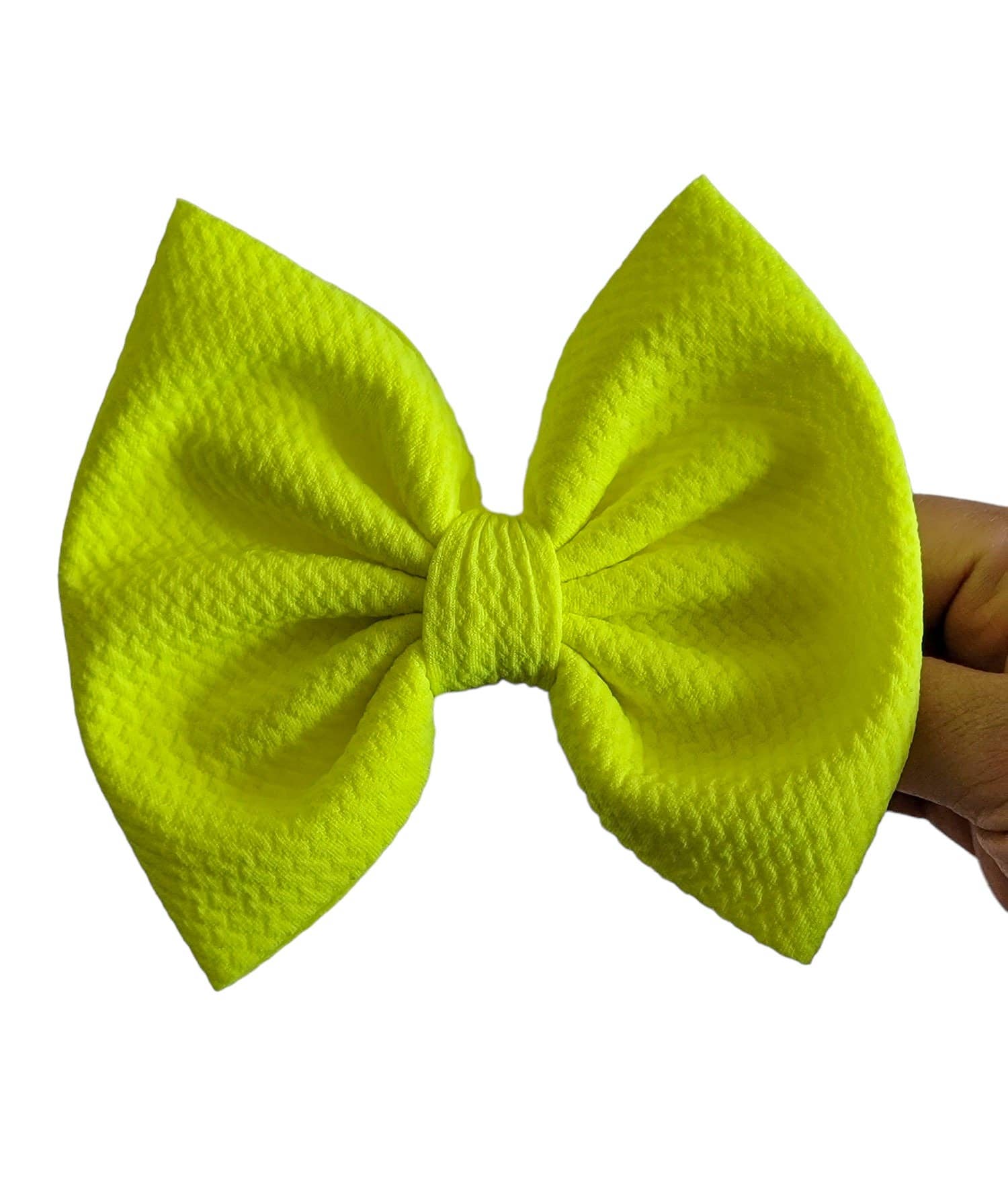 Attached to a 3 inch right-sided alligator clip with teeth (Nylon headband available upon request)