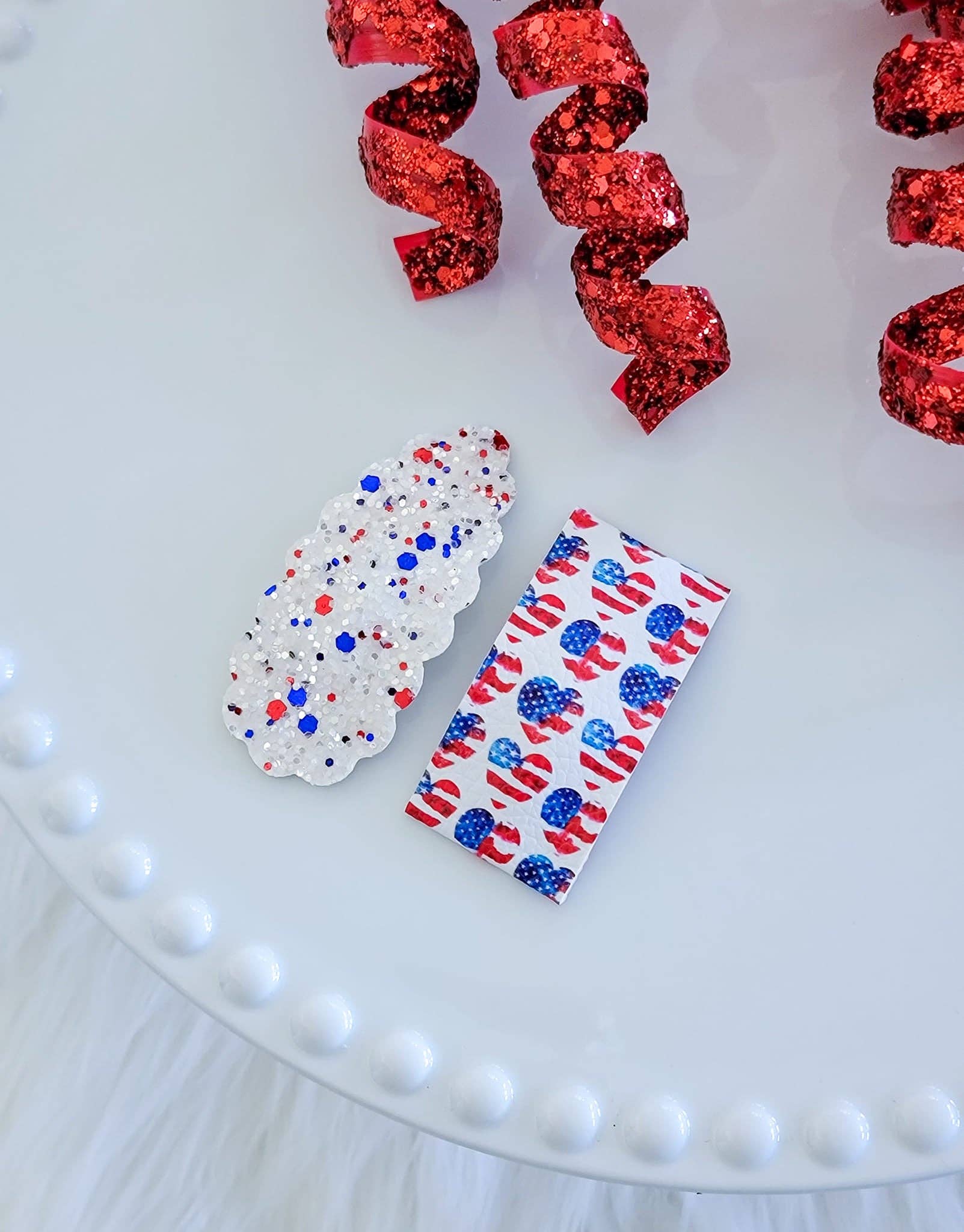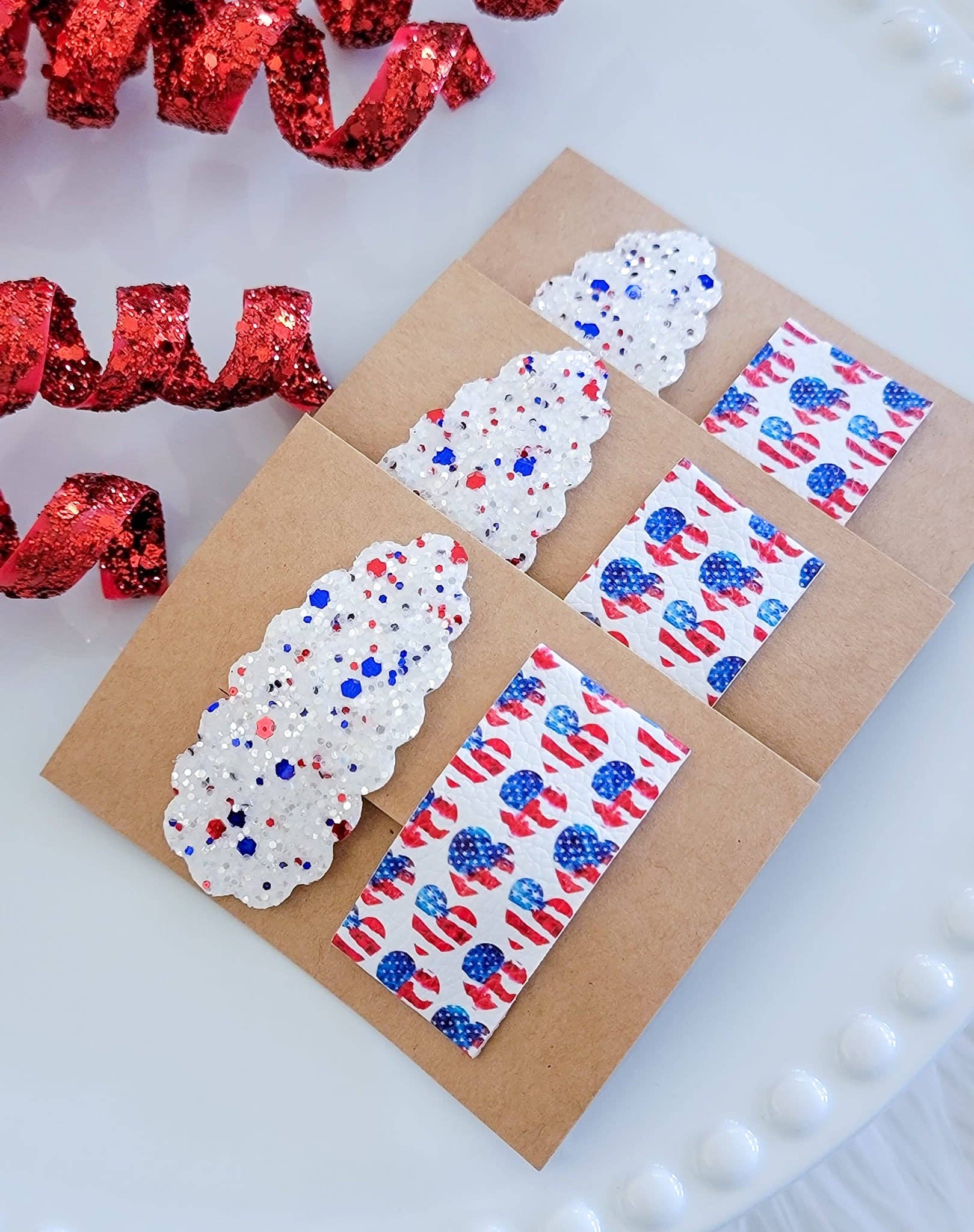 Complete your patriotic look with our Star Spangled Hearts Snap Clip Mix Set! These versatile hairbows feature a stunning patriotic design and are crafted with high-quality materials for long-lasting beauty. Don't miss out on the opportunity to show off your love for your country - grab this must-have accessory today!