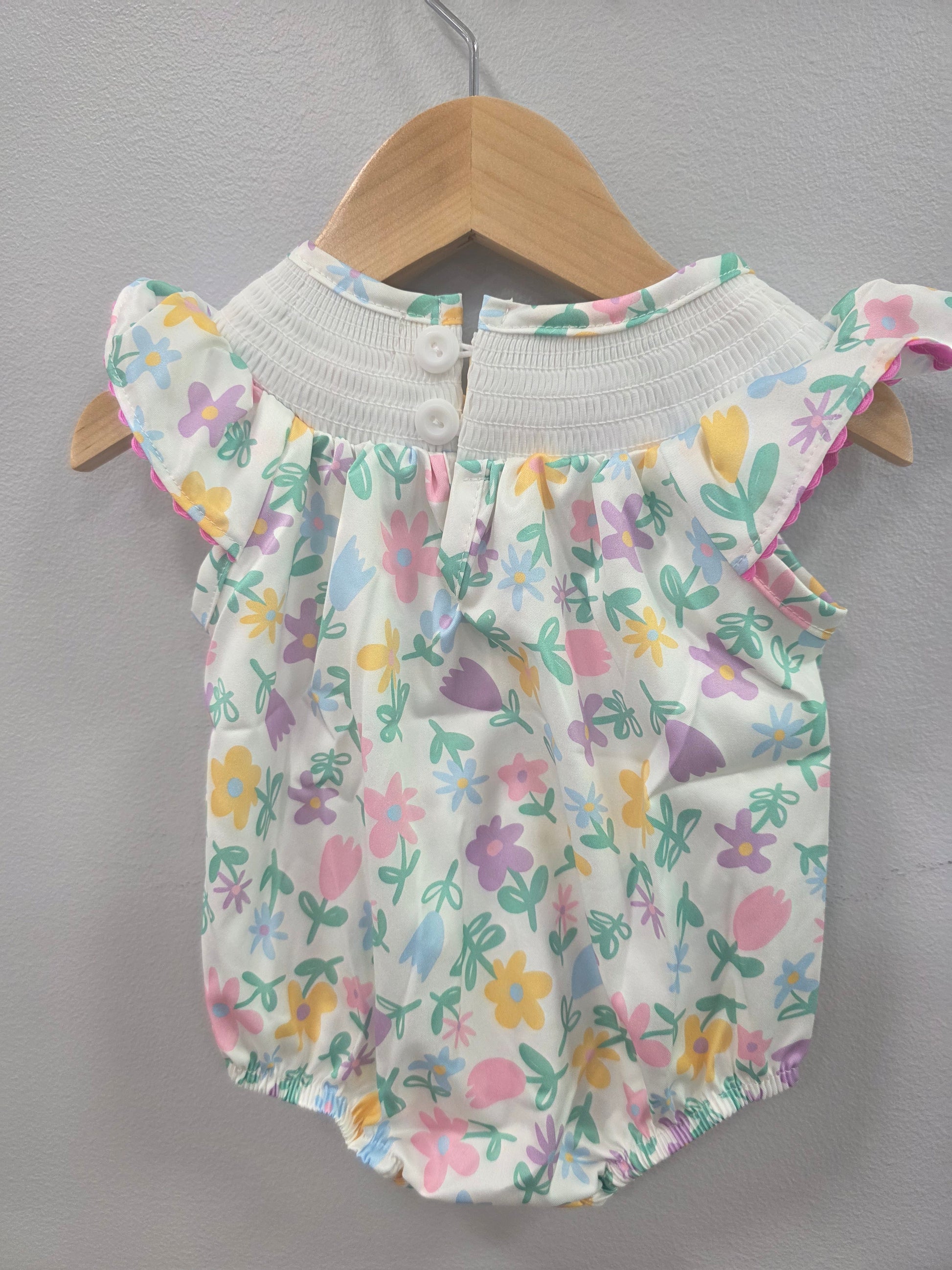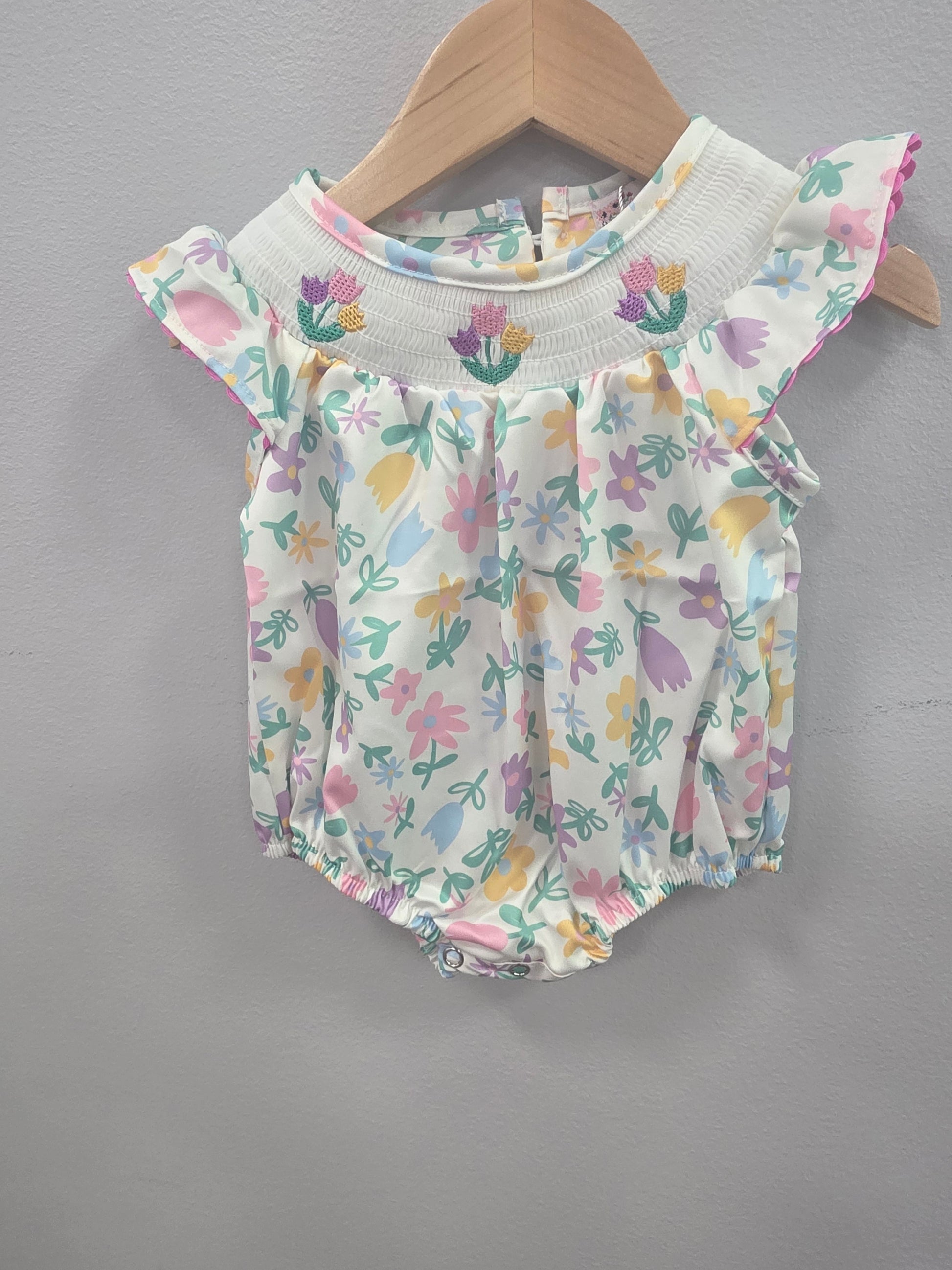 These adorable smocked rompers are a perfect boutique style and they have easy access with a snap bottom!