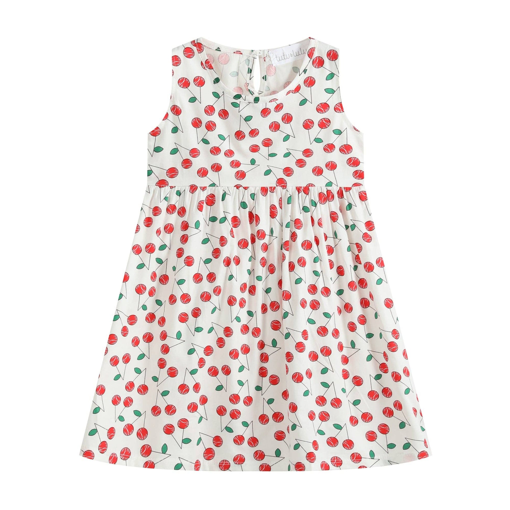 From our Tutu and Lulu line comes the delightful 'Red Lots of Cherries Sleeveless Dress.' Adorned with a playful abundance of cherries, this sweet and summery dress is perfect for twirling and giggling all day long.