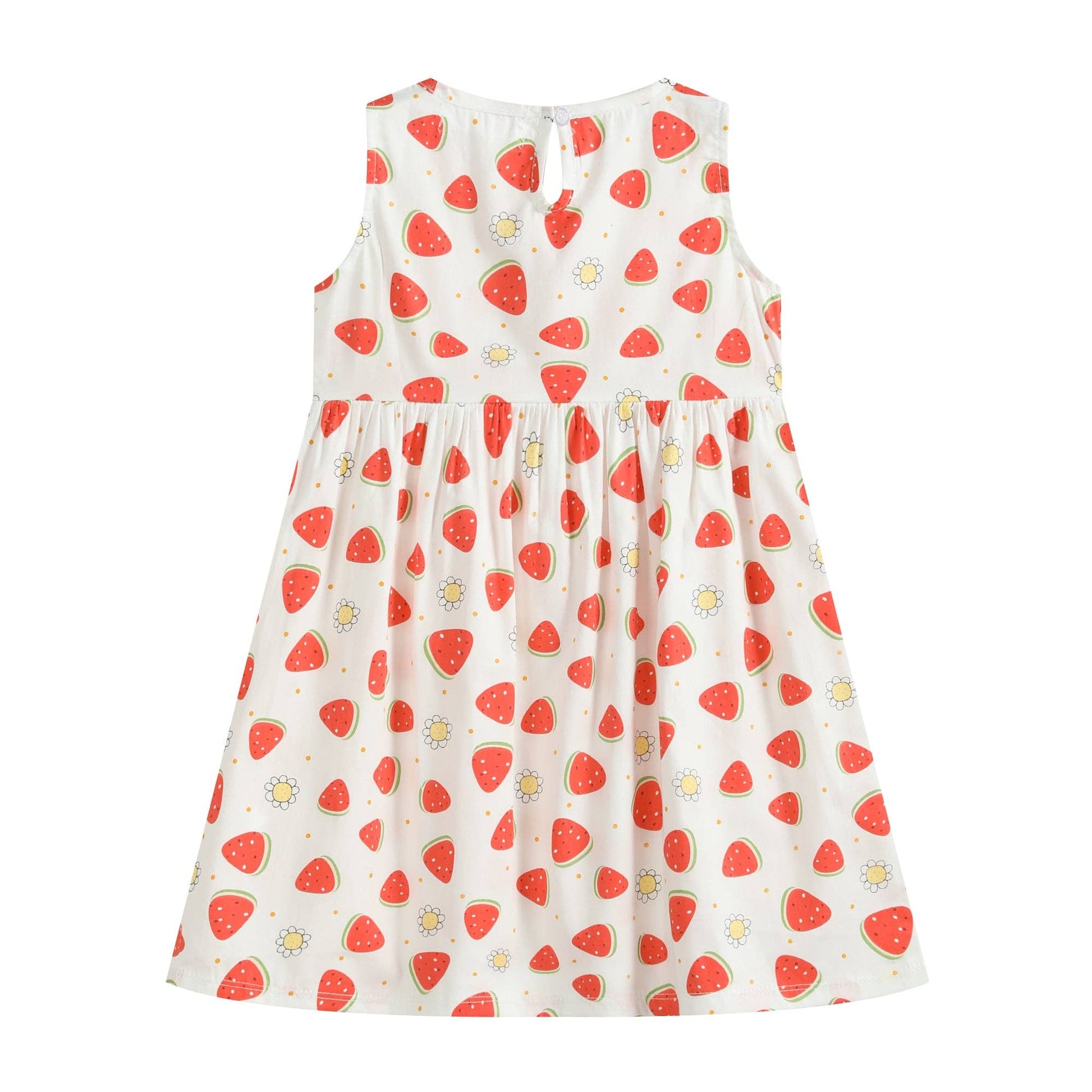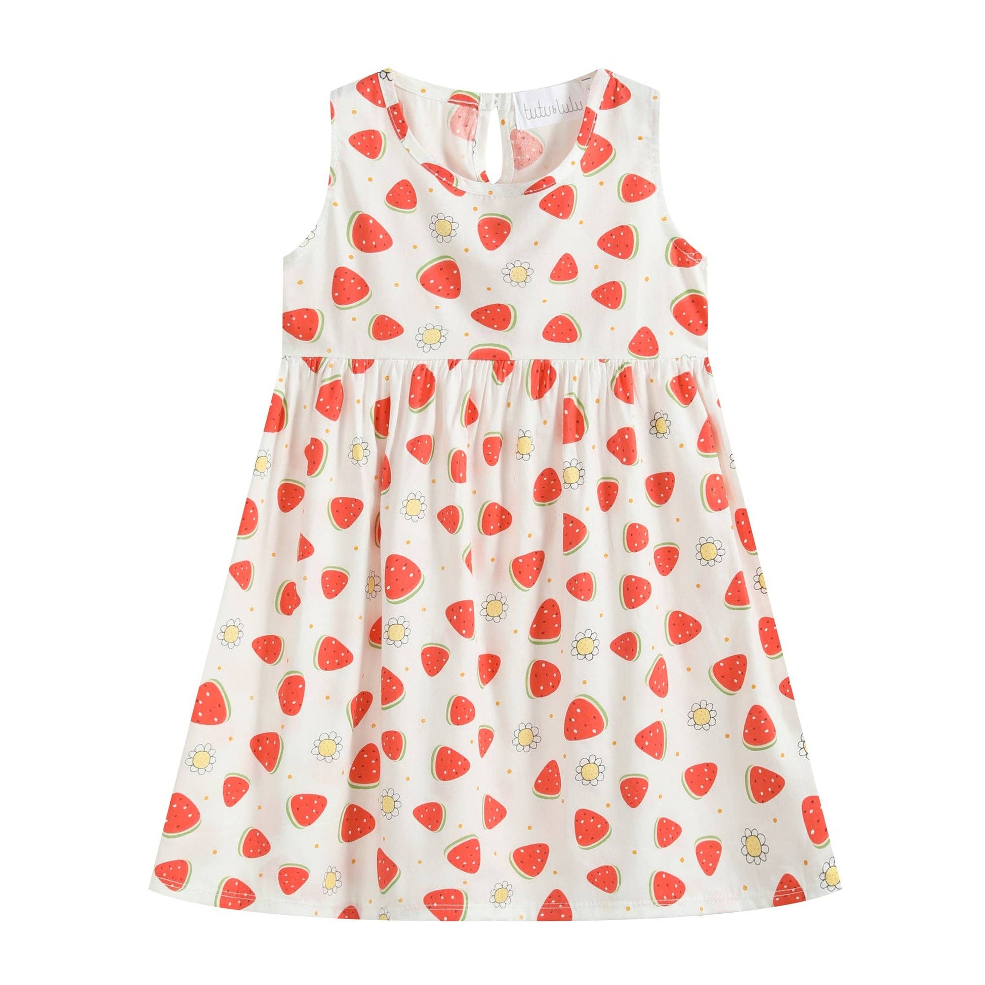 From our Tutu and Lulu line comes the enchanting Watermelon Sleeveless Dress. Delightfully vibrant and made in a charming watermelon and flower print, this dress is perfect for sunny adventures and twirl-filled moments.