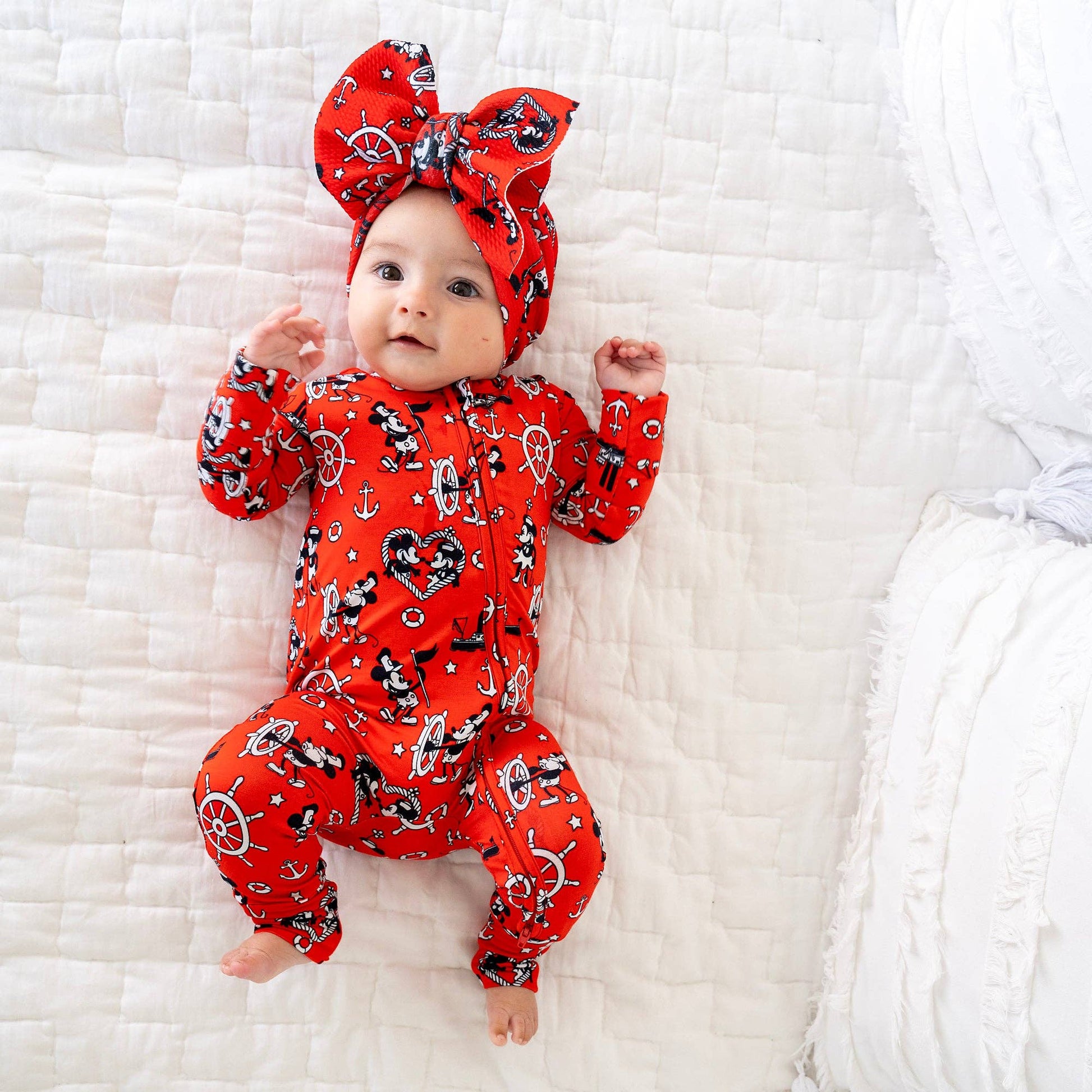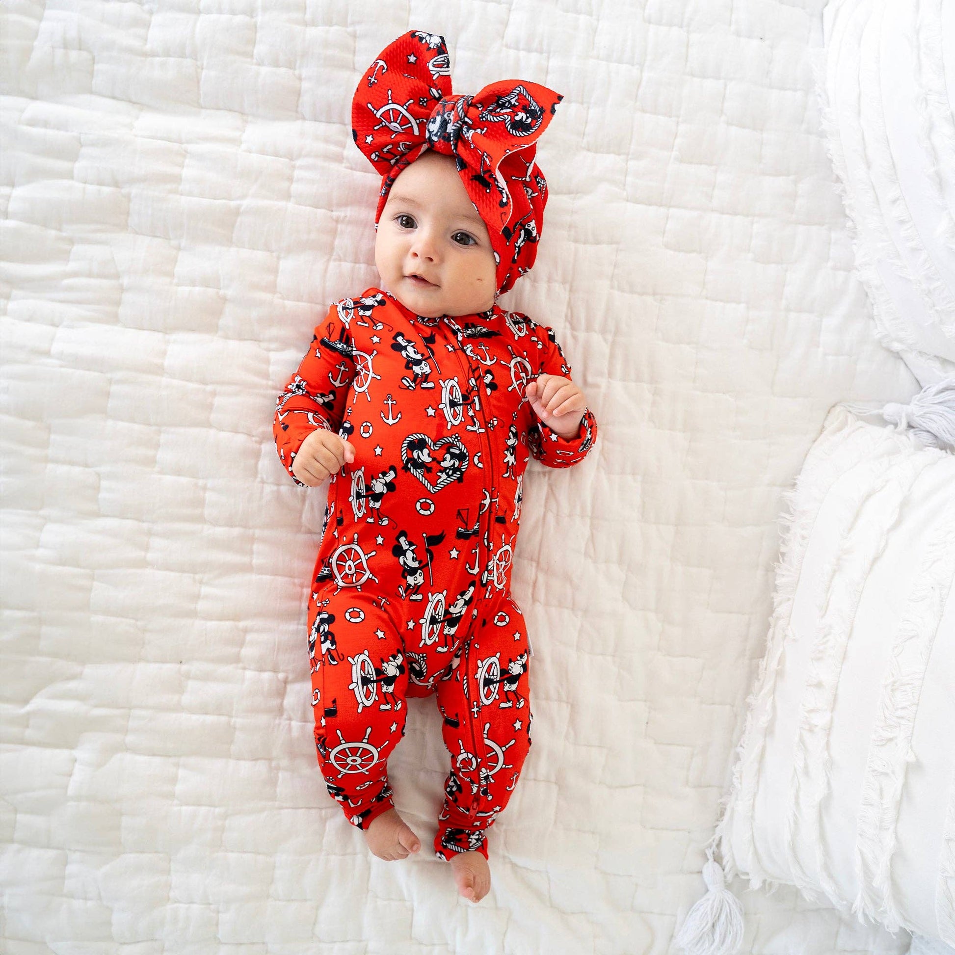 This zip one piece is super soft and comfortable. Featuring a zipper that runs from the top of the outfit to the ankle. Our favorite part about this outfit is that the zipper is 2 way! Making for super easy diaper changes without having to remove the whole outfit. The fabric we used is super stretchy and breathable, made from bamboo viscose, wait until you feel how soft it is! These run about one size big leaving room to grow but are meant to have a slim fitted look to them. Mitten cuff on arm keeps baby from scratching, if needed. Fold-over foot at ankle can be used on chilly days when you forgot the socks! Please note: newborn size is footed.